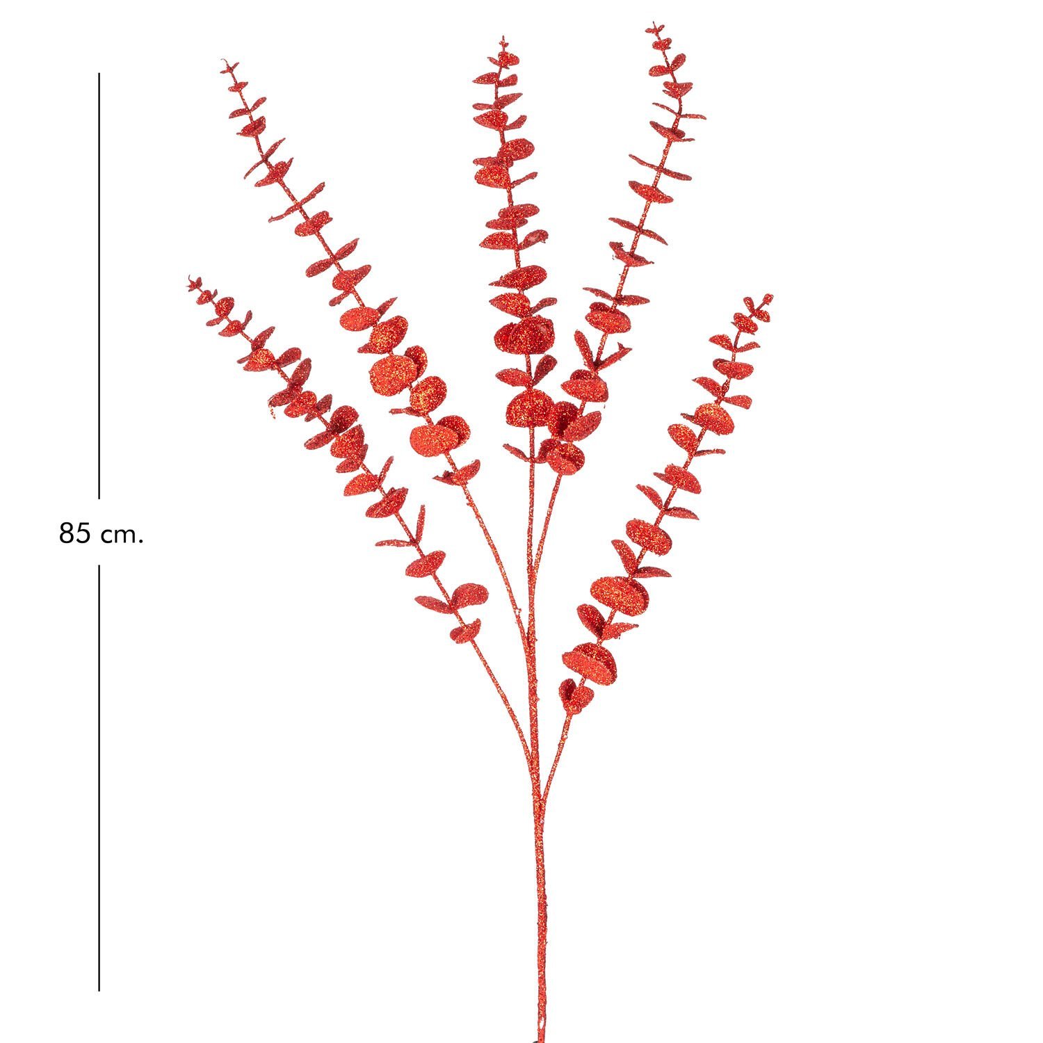 Yapay Okaliptus, Simli Kırmızı: 85 cm Uzunluğunda Modern ve Narin Yılbaşı Zarafeti