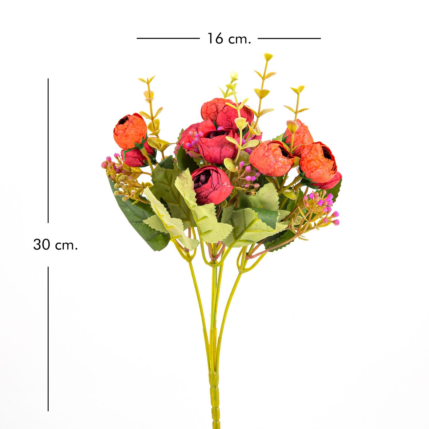 Yapay Ranunculus Demeti, Kırmızı - 16x30 cm