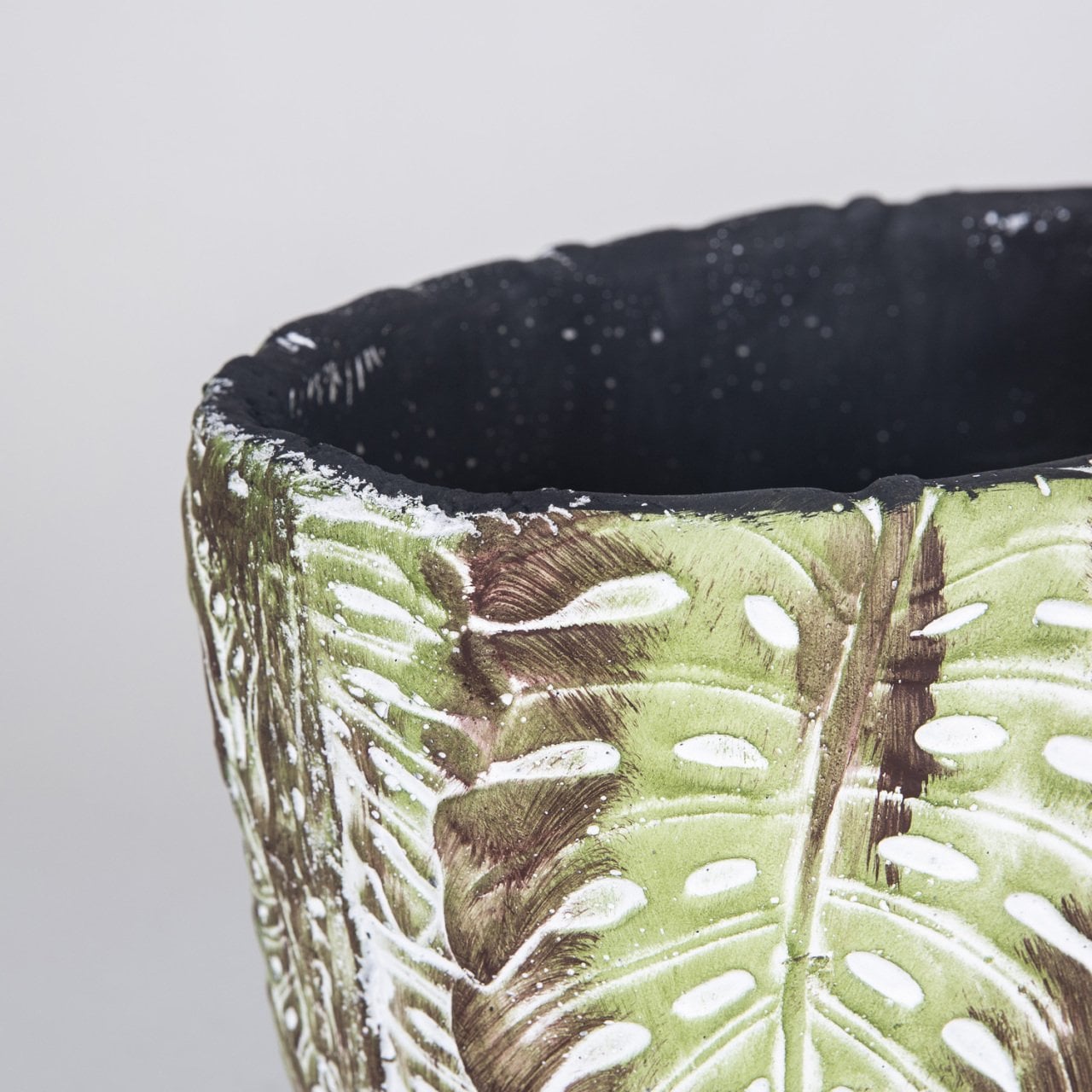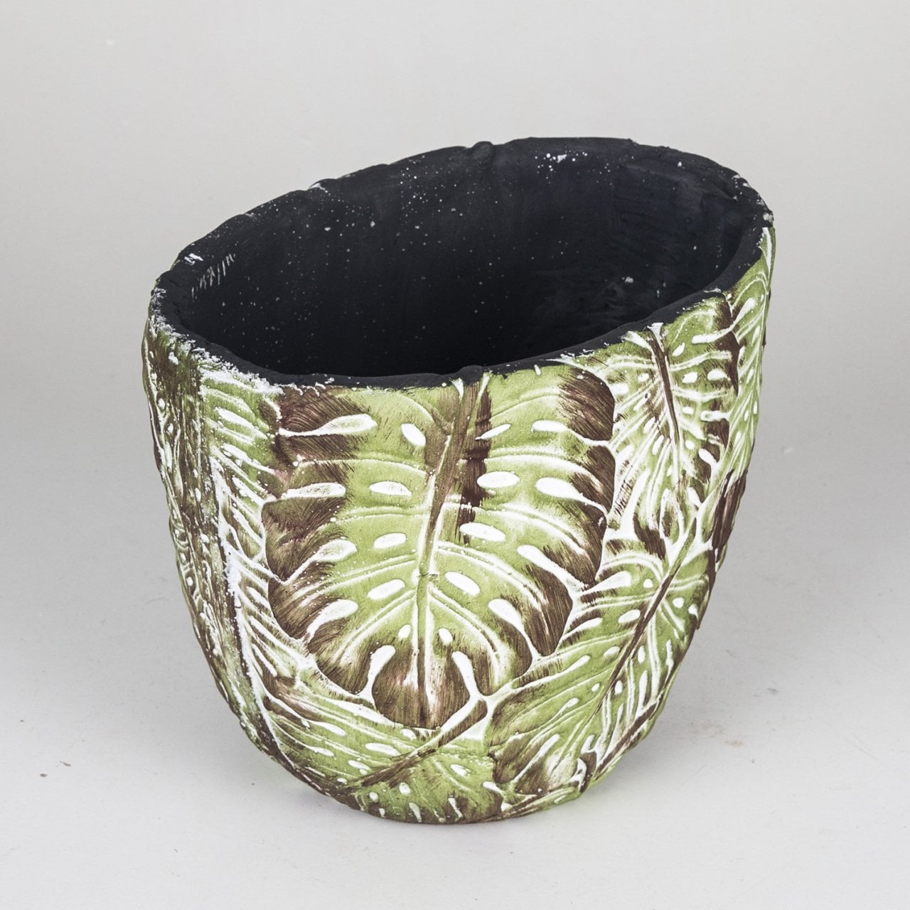 Yaprak Desenli Büyük Boy Yeşil Beton Saksı 4 LT