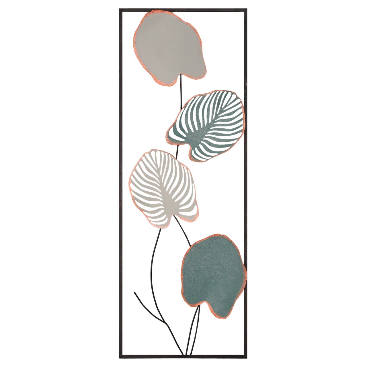 Yaprak Desenli Dikdörtgen Yeşil/beyaz Metal Duvar Panosu 32x90 Cm