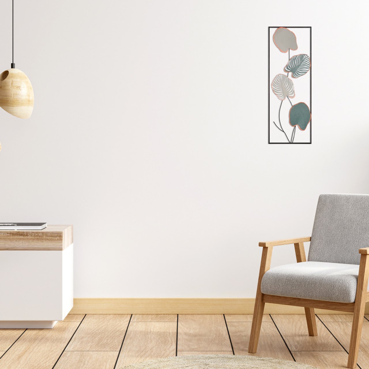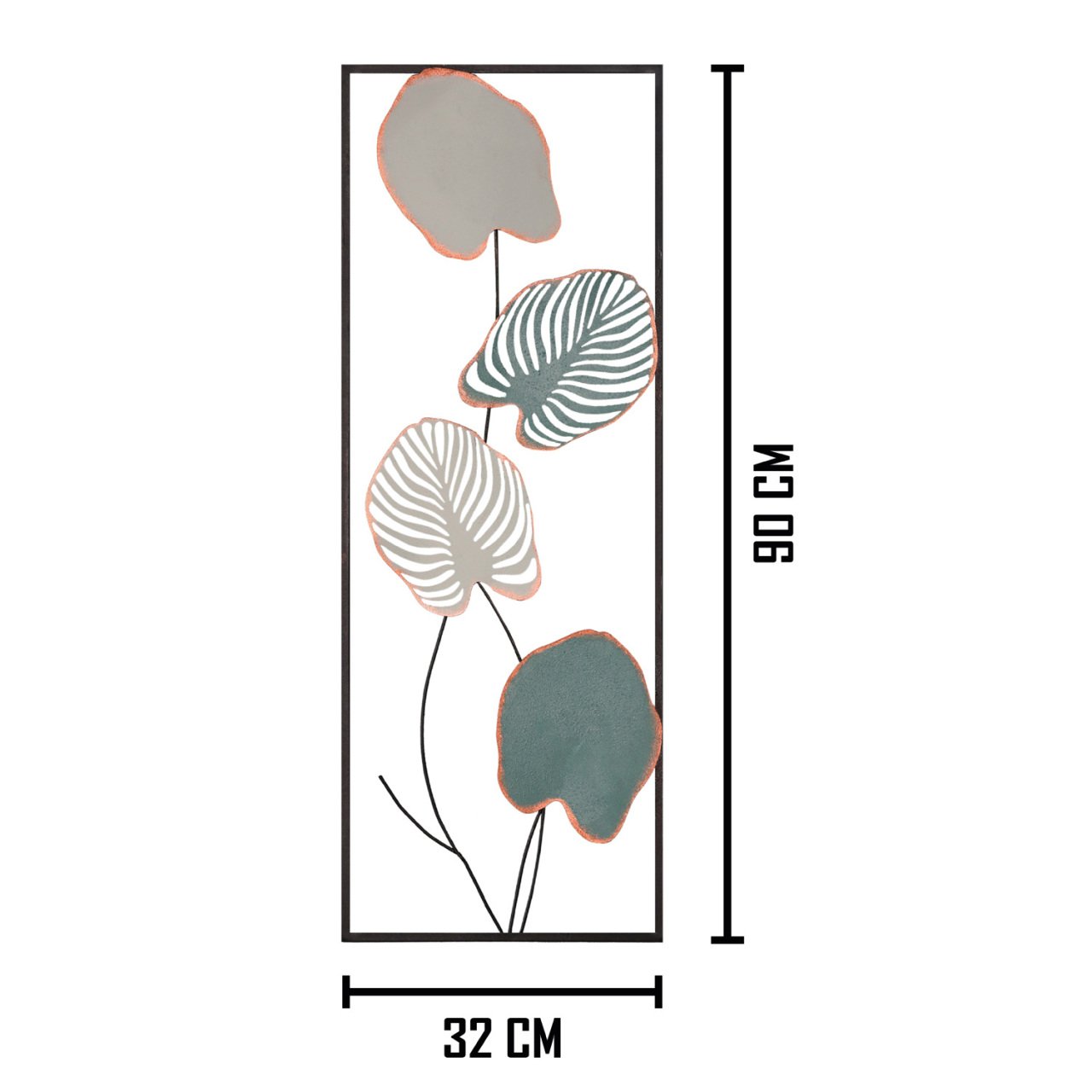 Yaprak Desenli Dikdörtgen Yeşil/Beyaz Metal Duvar Panosu 32x90 cm.