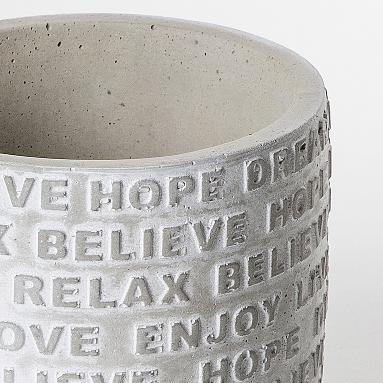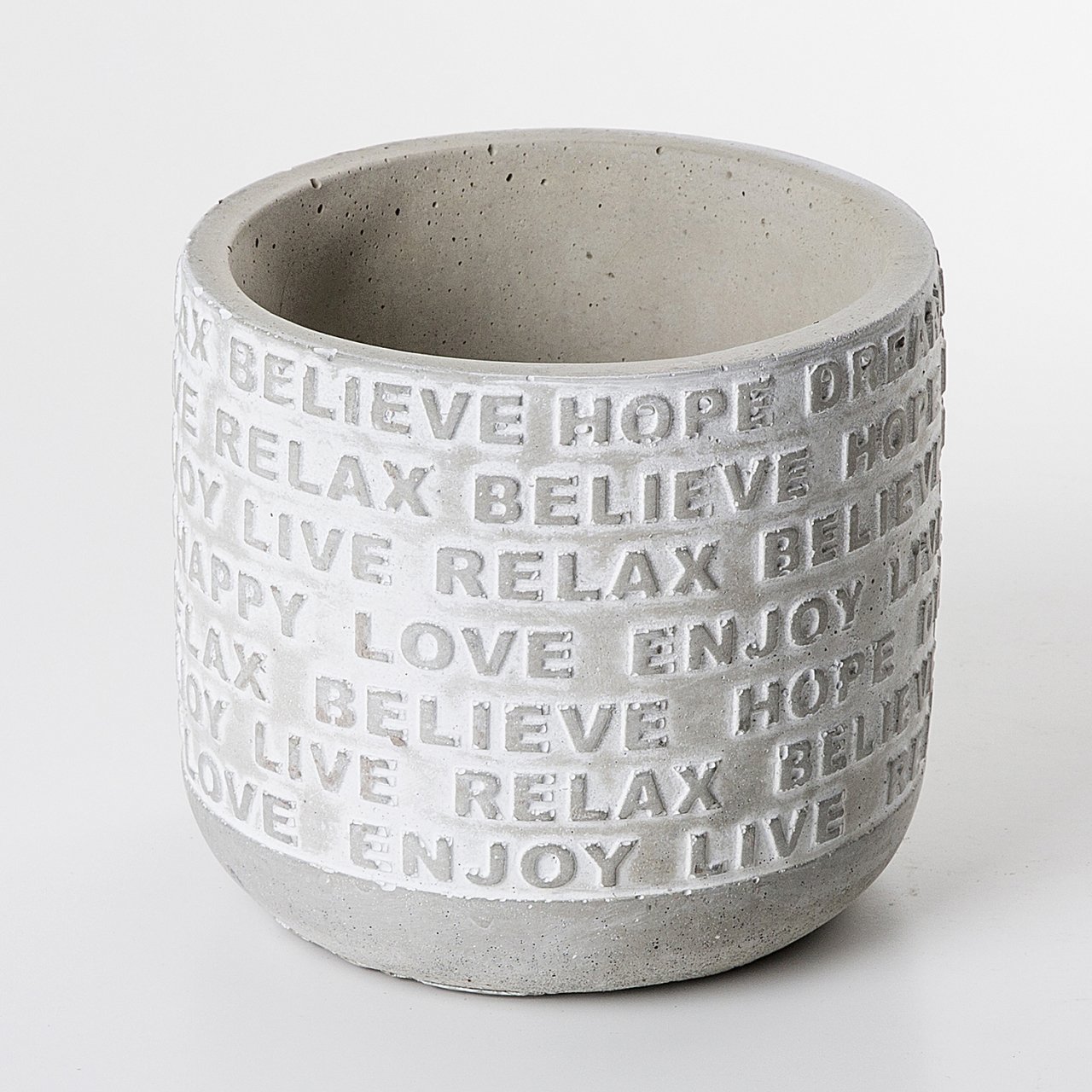Yazı Desenli Beton Gri Saksı 15x13 Cm