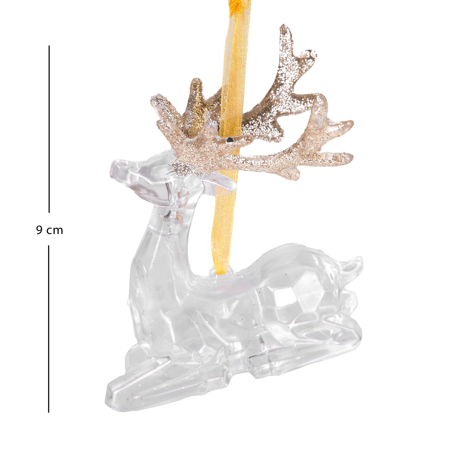 Ağacınızda Büyülü Bir Işıltı: Herdekora Akrilik Cam Oturan Geyik Süsü (9 cm)