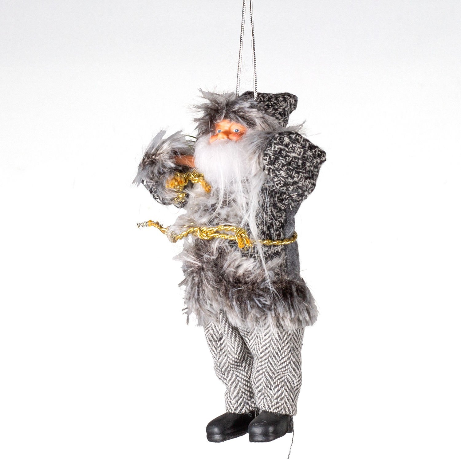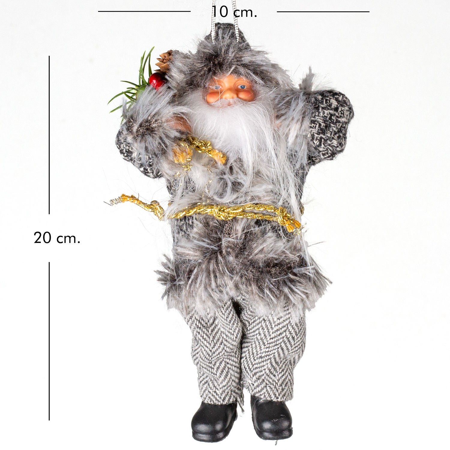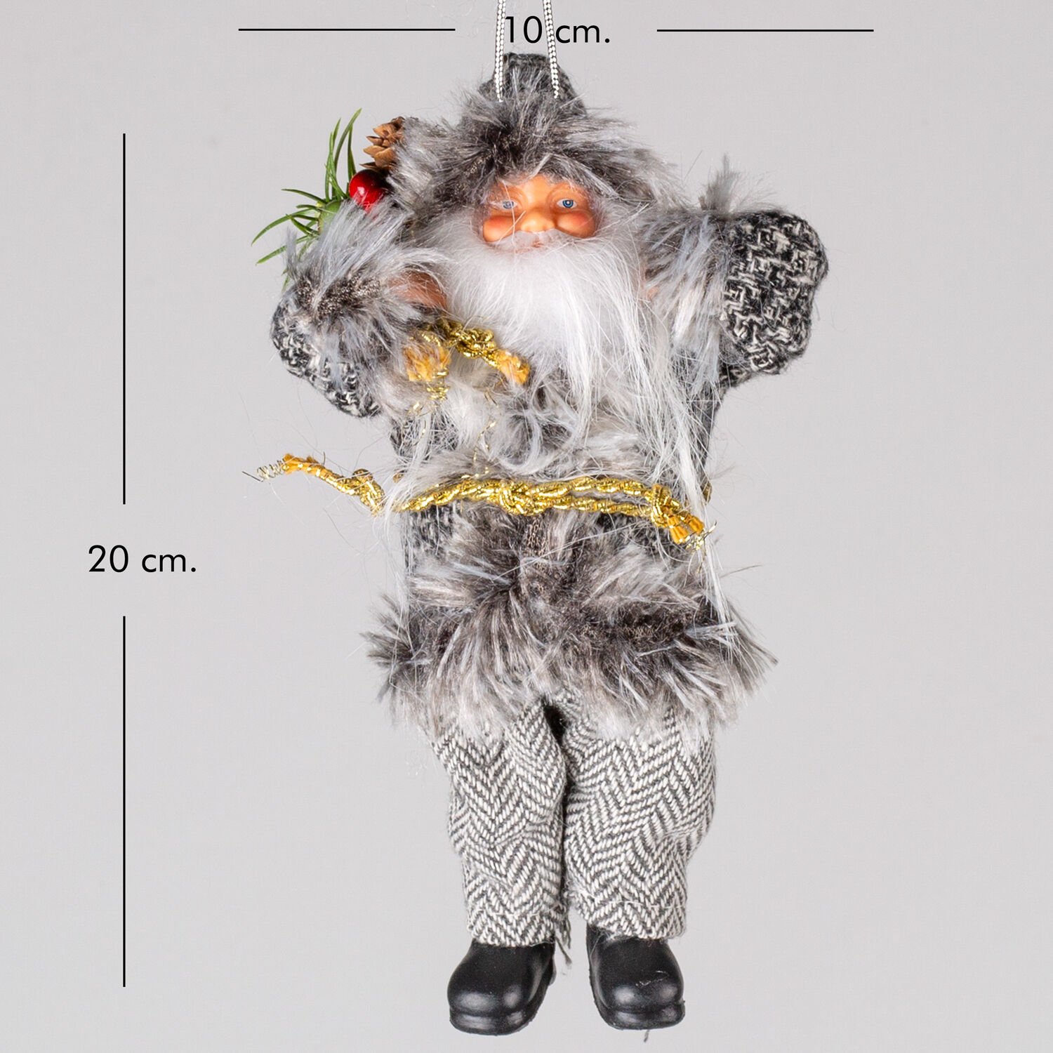 Yılbaşı Ağacı Süsü, Askılı Noel Baba, Gri Elbiseli - 20 cm