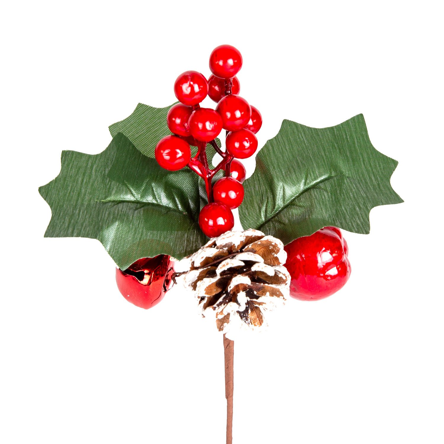 Yılbaşı Çiçeği Pike Berry Karlı Kozalaklı Çanlı Kırmızı-Yeşil 20 Cm.