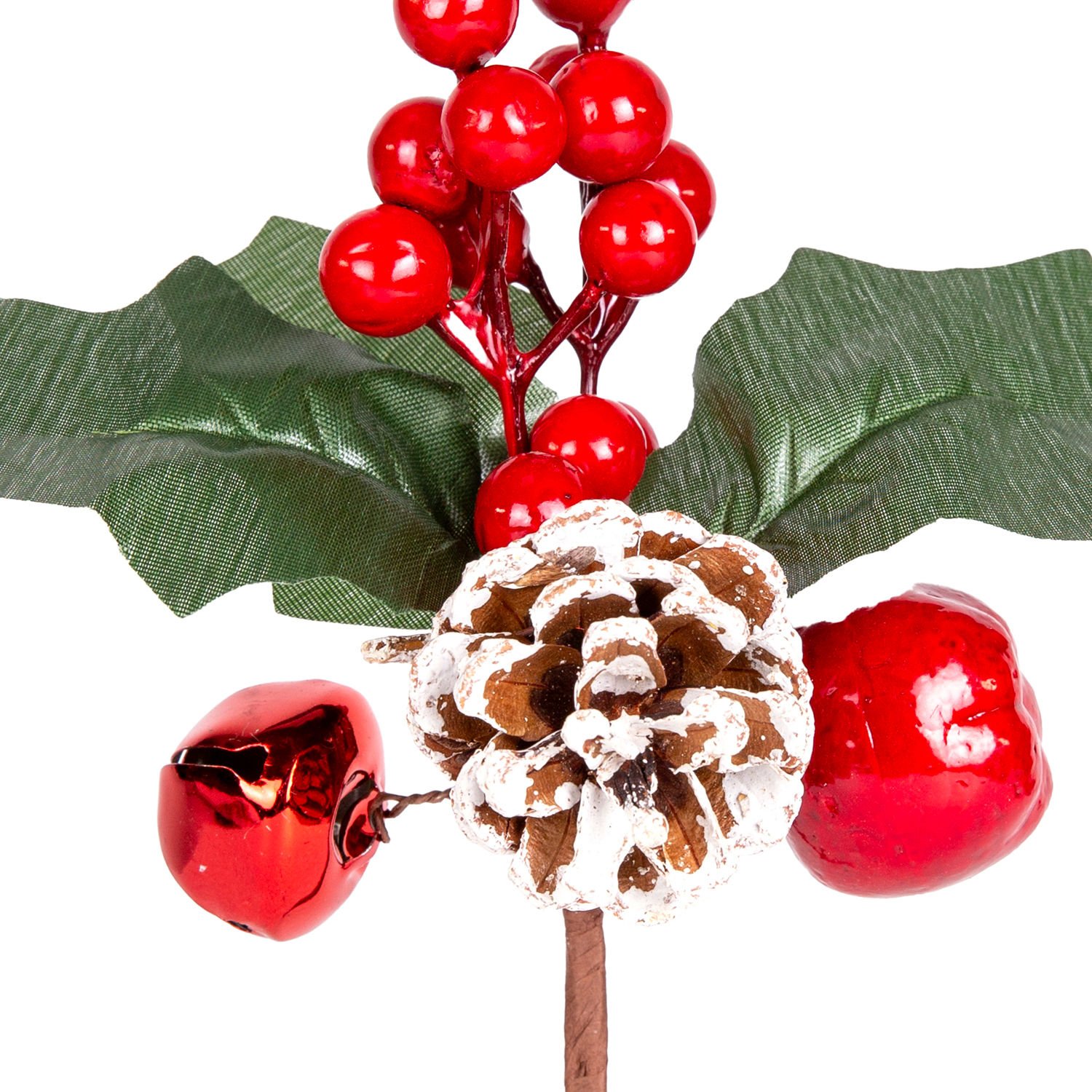 Yılbaşı Çiçeği, Pike, Berry, Karlı, Kozalaklı, Çanlı, Kırmızı-Yeşil - 20 cm
