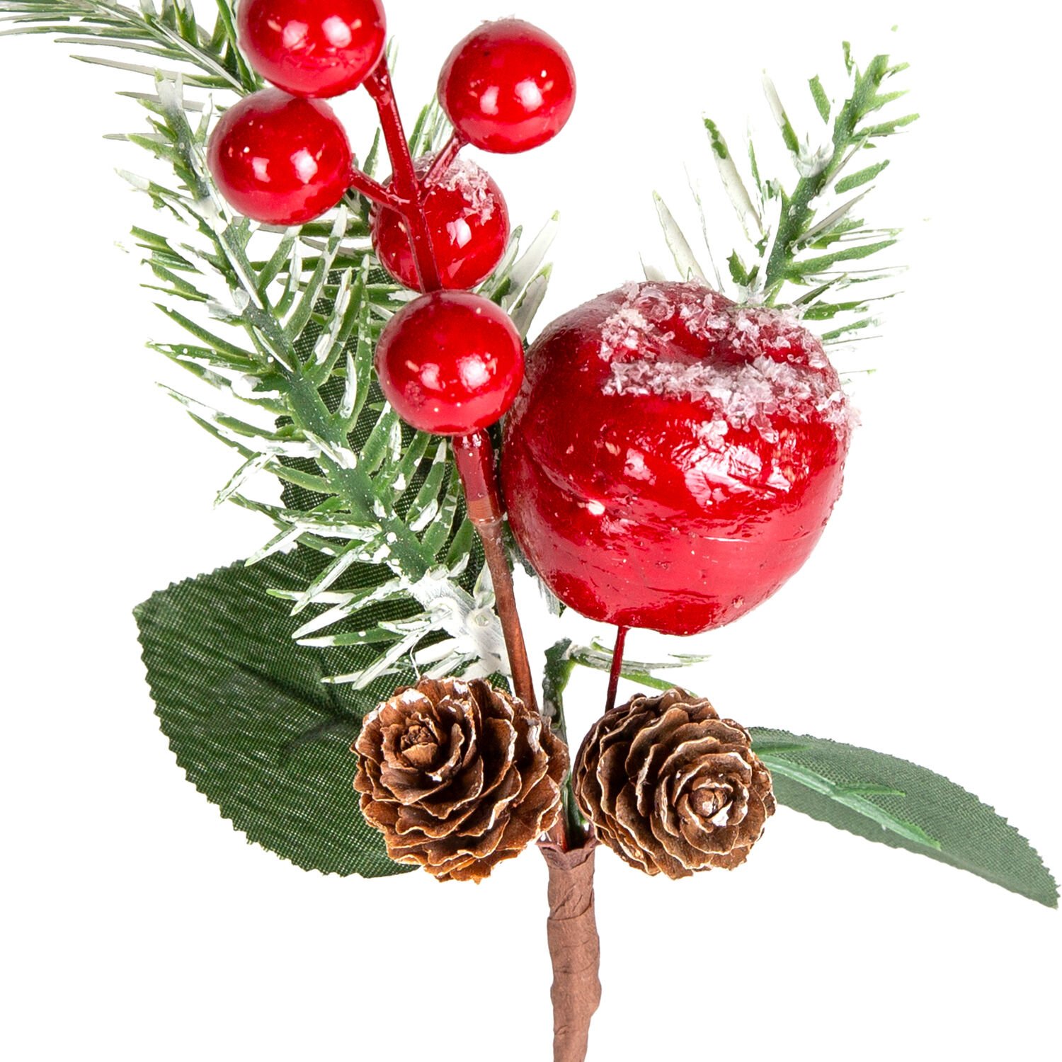 Yılbaşı Çiçeği Pike Berry Kozalaklı Karlı Elmalı Kırmızı-Yeşil 20 Cm.