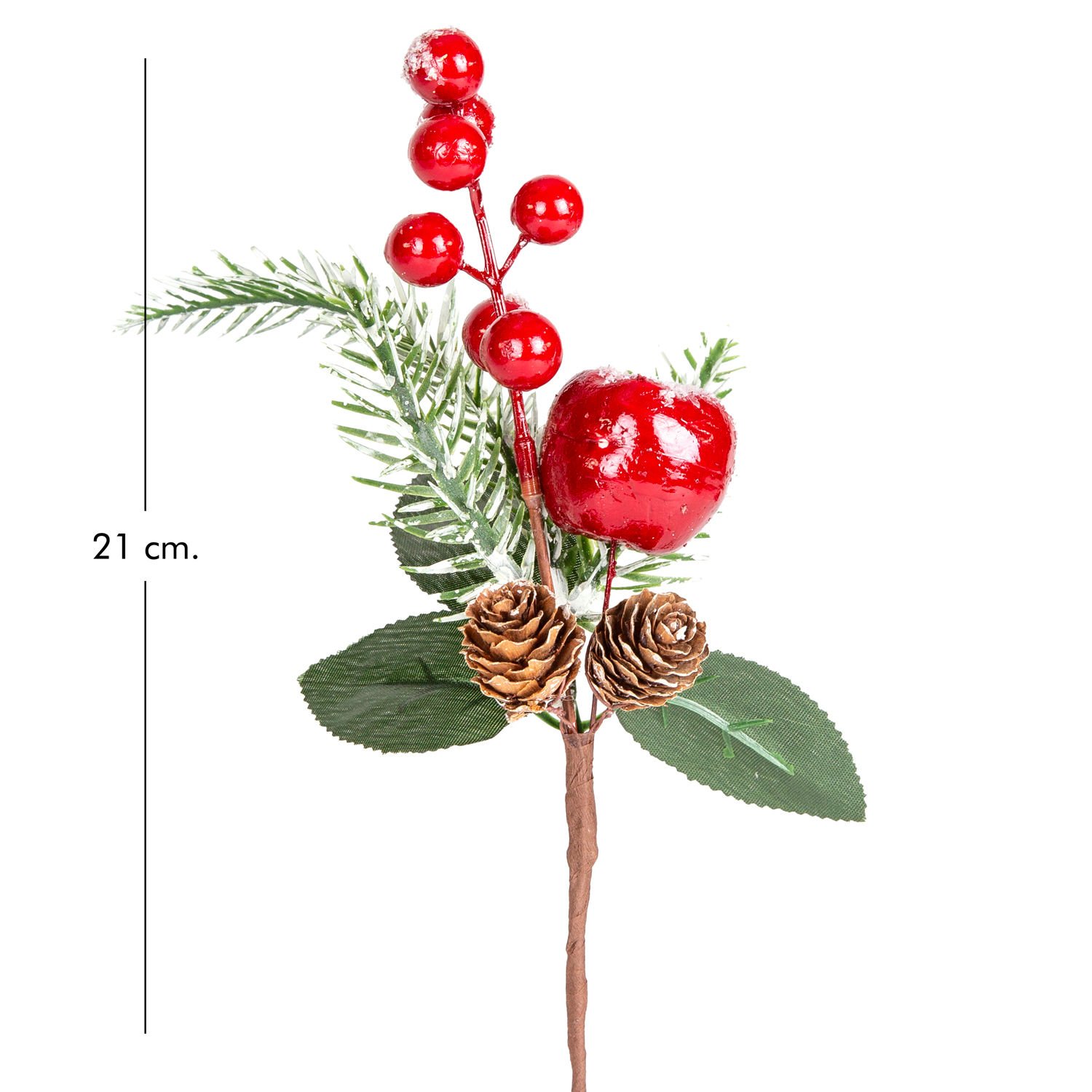 Yılbaşı Çiçeği, Pike, Berry, Kozalaklı, Karlı, Elmalı, Kırmızı-Yeşil - 20 cm