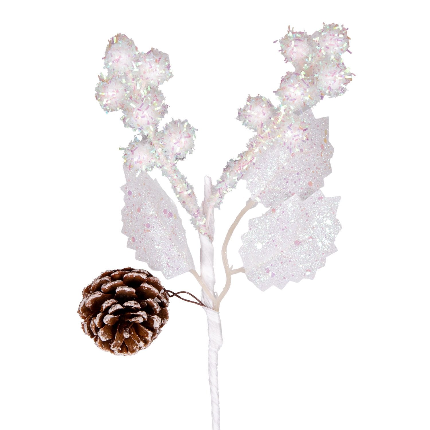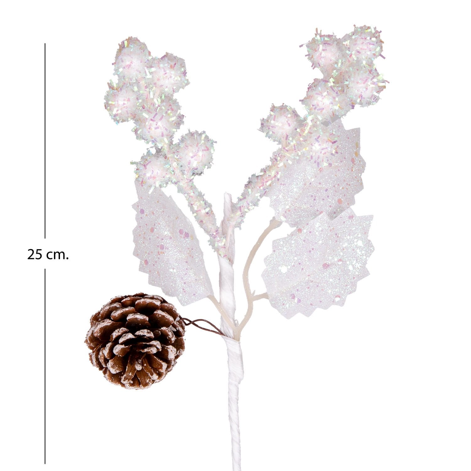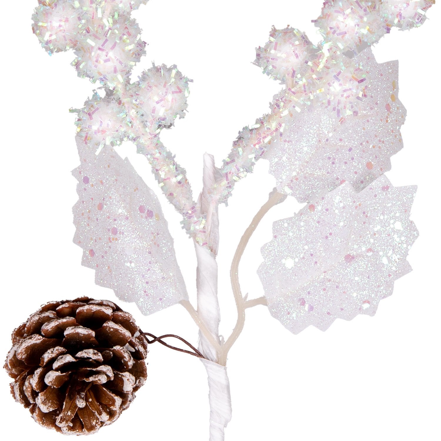 Yılbaşı Çiçeği, Pike, Berry, Şeker, Pembe Simli, Kozalaklı, Beyaz - 25 cm
