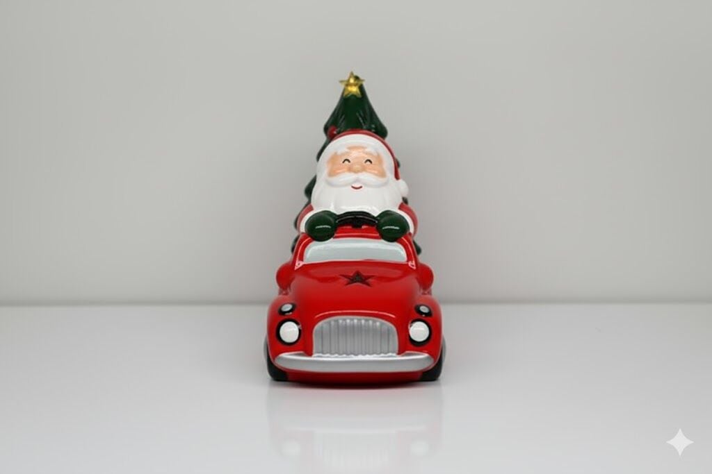 Yılbaşı Kamyoneti, Noel Baba Figürlü, Kırmızı - Işıklı, Seramik