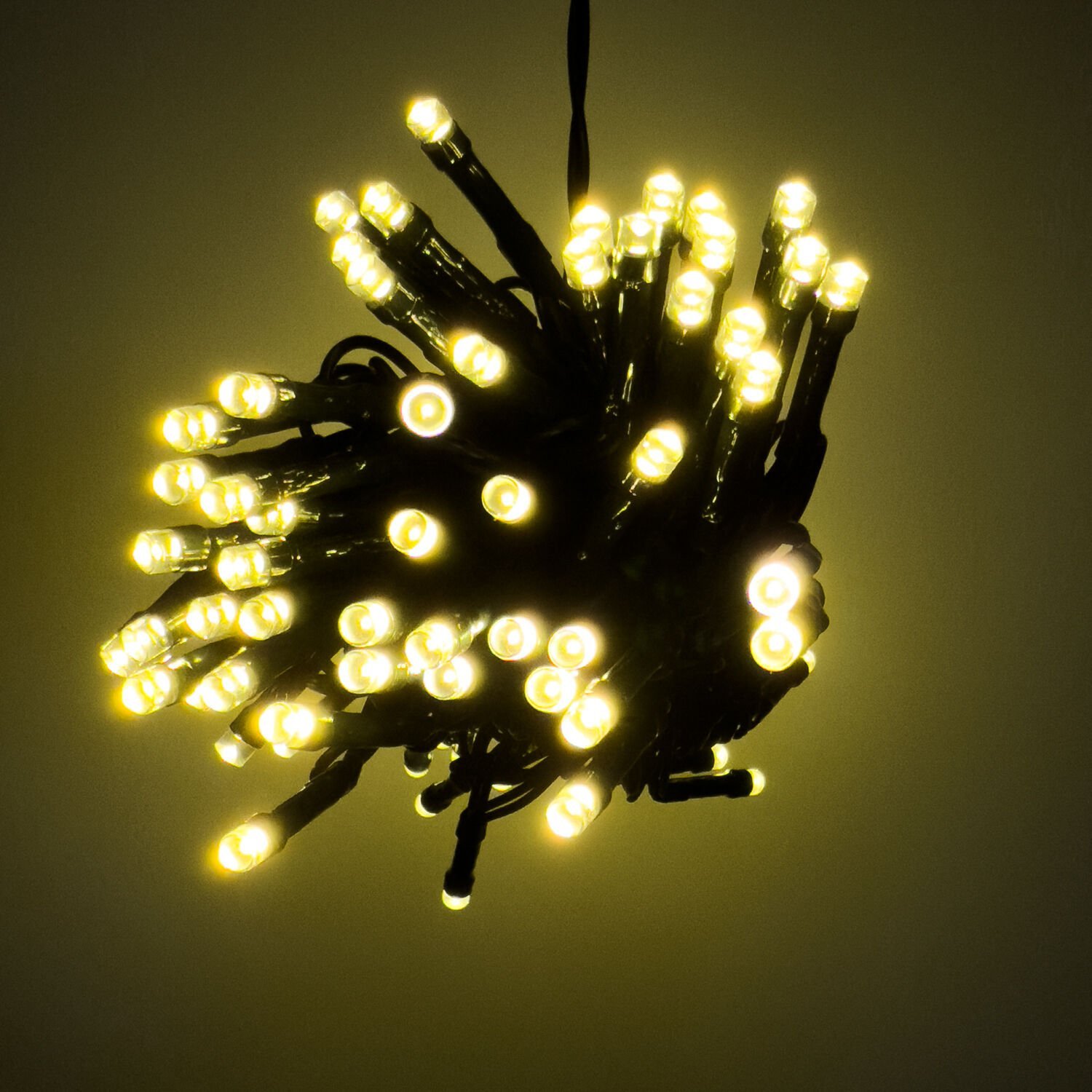 100 adet LED ile donatılmış 10 metrelik uzun kablo, büyük pencereleri, uzun merdiven korkuluklarını ve büyük yılbaşı ağaçlarını tek bir ürünle aydınlatmak için idealdir. -