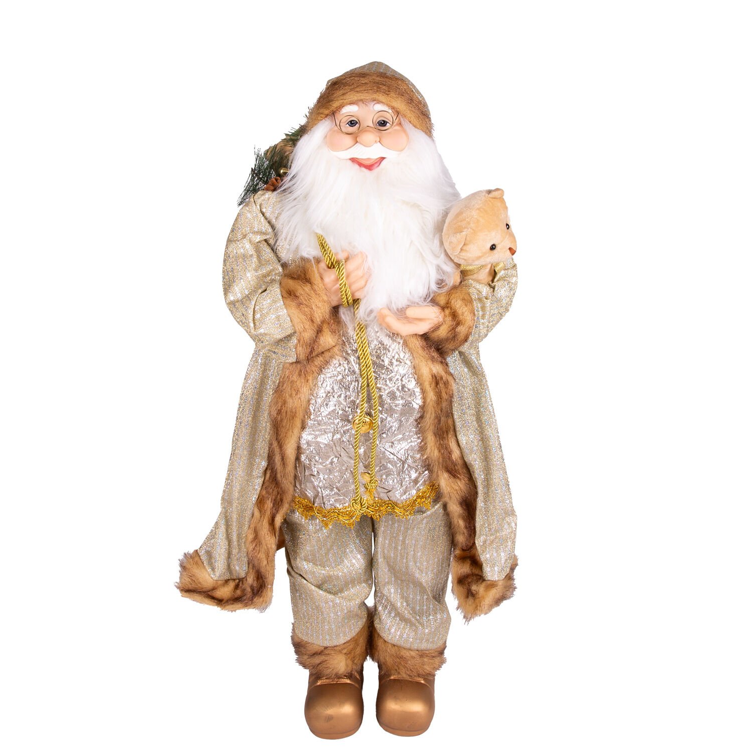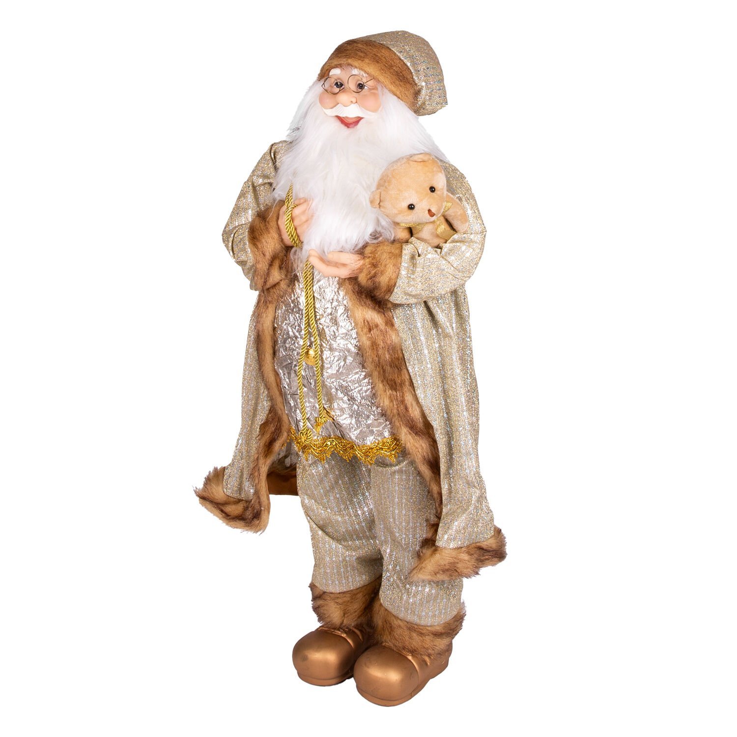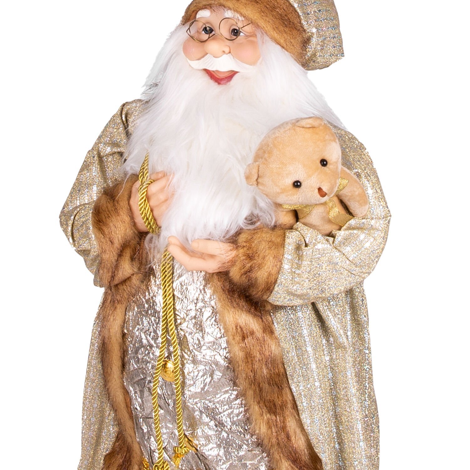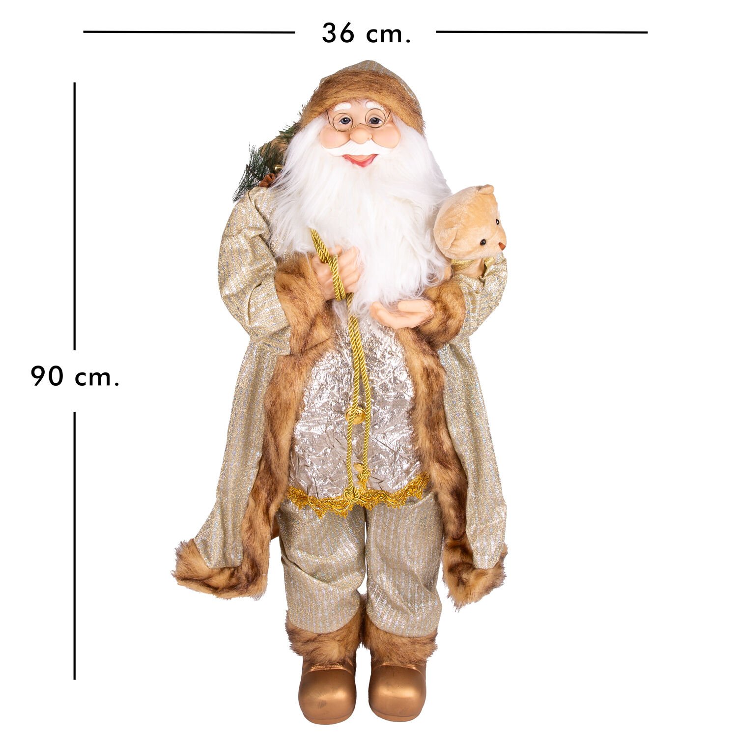 - Paket İçeriği: 1 Adet Yılbaşı Noel Baba, Hediye Çuvallı, Pelüş Ayı Dekorlu, Gold - 90 cm Figür