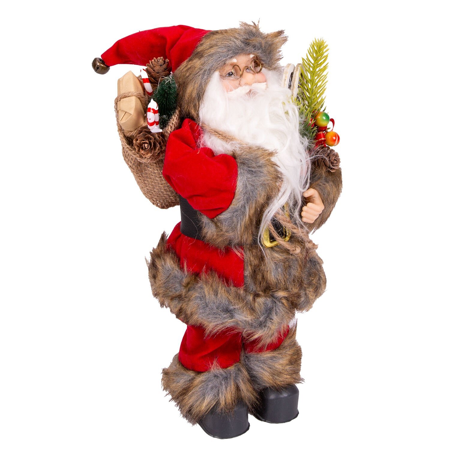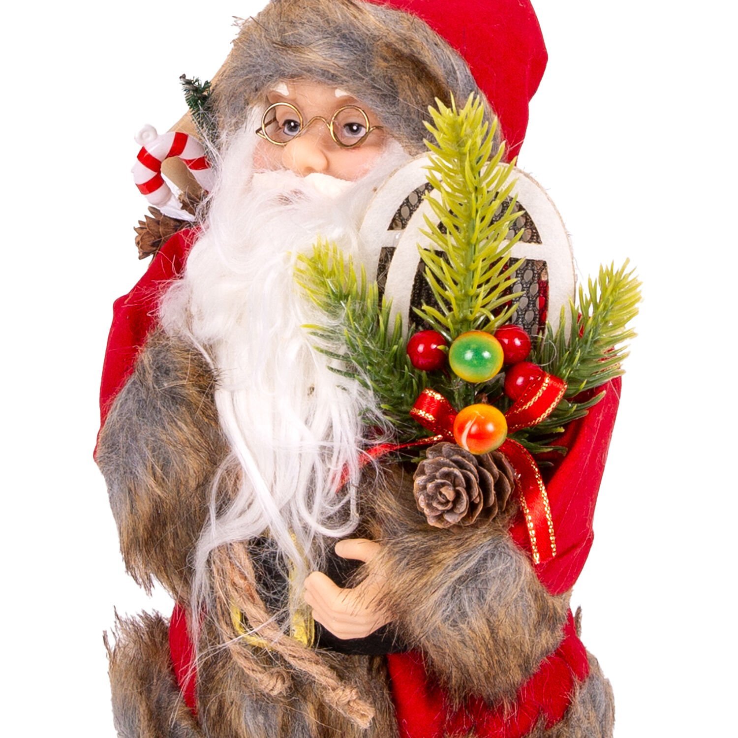 Yılbaşı Noel Baba, Hediye Çuvallı, Yılbaşı Dekorlu, Kırmızı - 30 cm