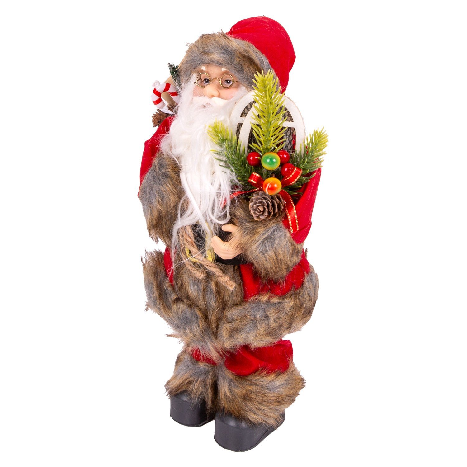 Klasik kırmızı cübbesi ve beyaz sakallarıyla tam bir Noel Baba atmosferi sunar, geleneksel yılbaşı dekorasyonlarının vazgeçilmezidir. -