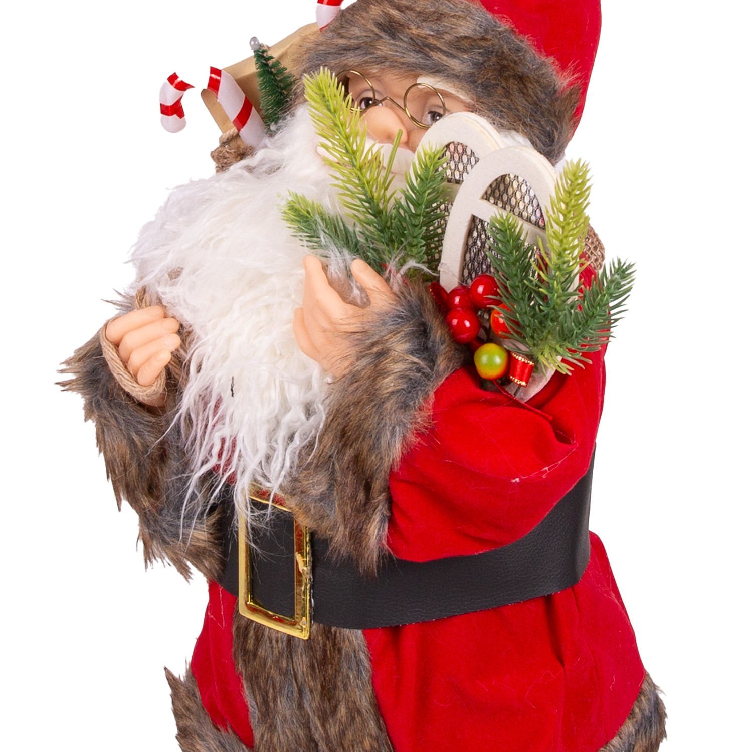 Omuzundaki dolgun hediye çuvalı, Noel Baba'nın cömertliğini ve sürprizlerle dolu ruhunu sembolize eder. Bu özel detay, figürün görsel zenginliğini artırırken, hayal gücünüzü harekete geçirerek etrafına neşe saçar ve evinize sıcak bir hikaye katar.