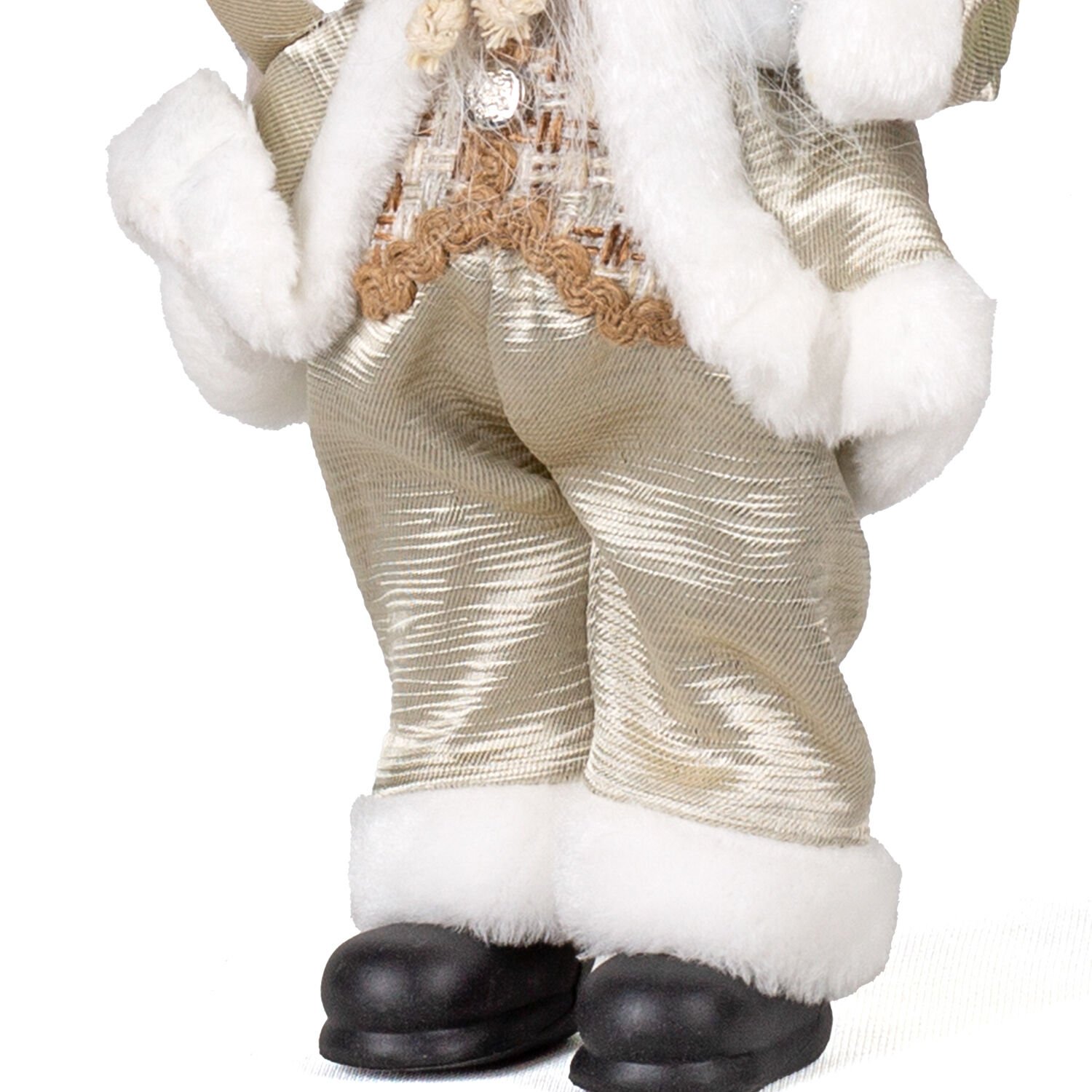 Figürün kollarında taşıdığı özenle hazırlanmış minyatür hediye paketleri, görsel zenginlik ve neşe katar. Yılbaşı ruhunu en iyi şekilde temsil eder. -