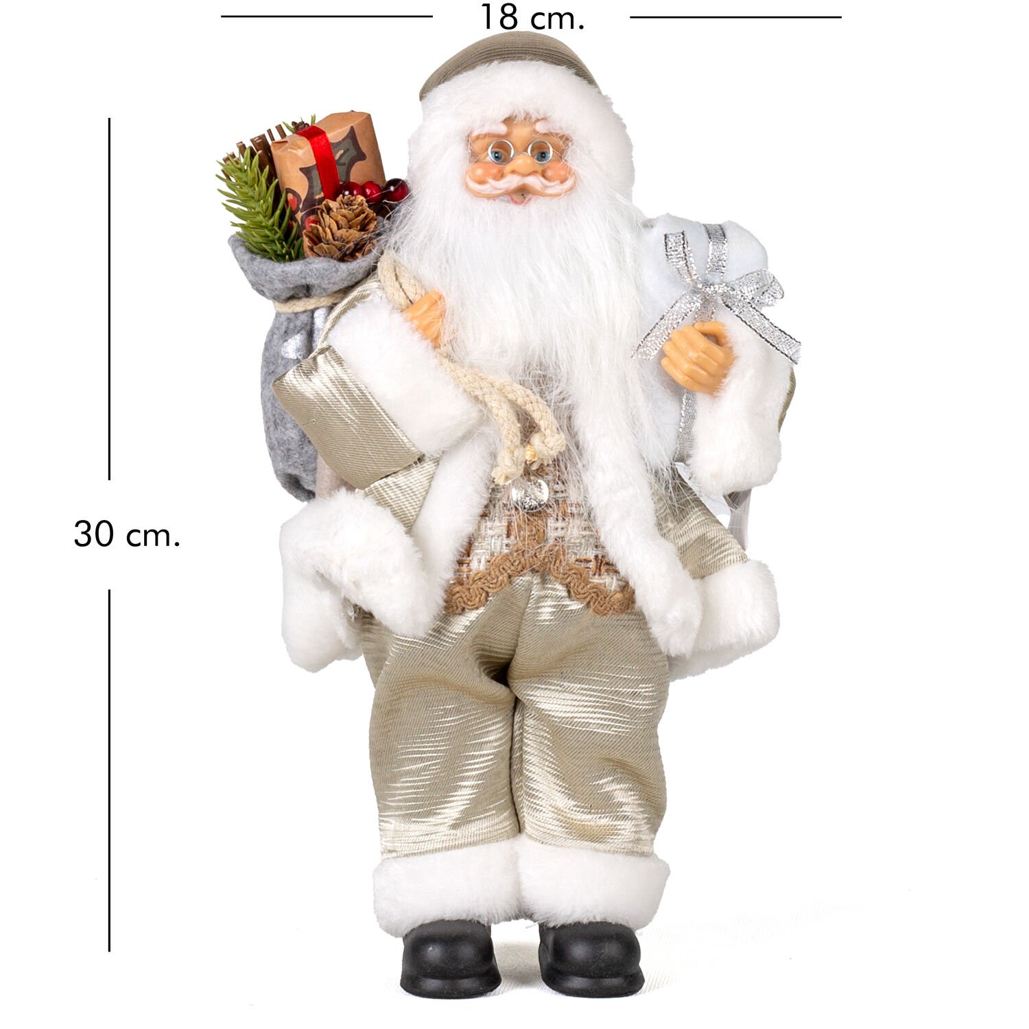 Yılbaşı Neşesinin Tatlı Simgesi: Hediye Paketi Taşıyan, Geleneksel 30 cm Noel Baba Figürü