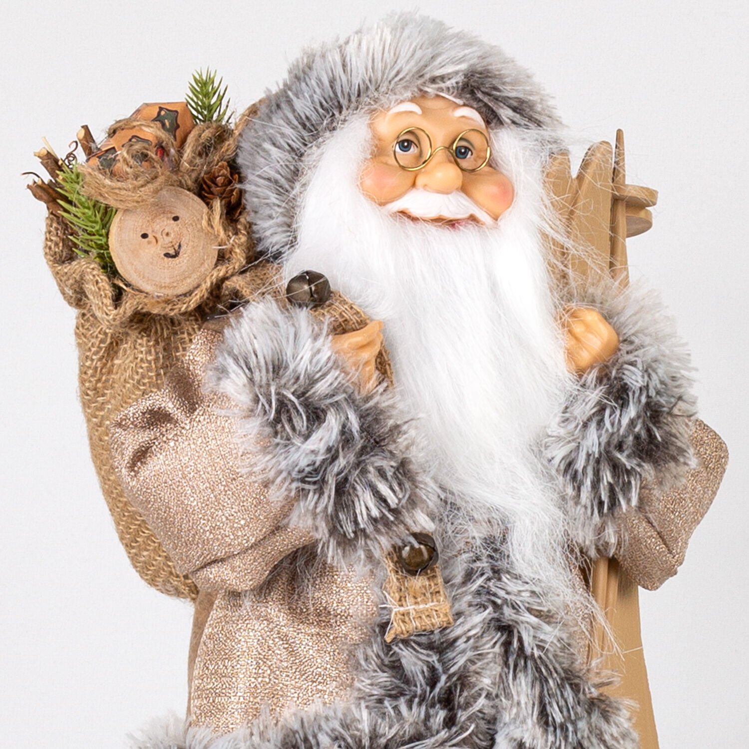 Yılbaşı Noel Baba, Kahverengi Pantolonlu, Kayak Takımı Taşıyan - 45 cm