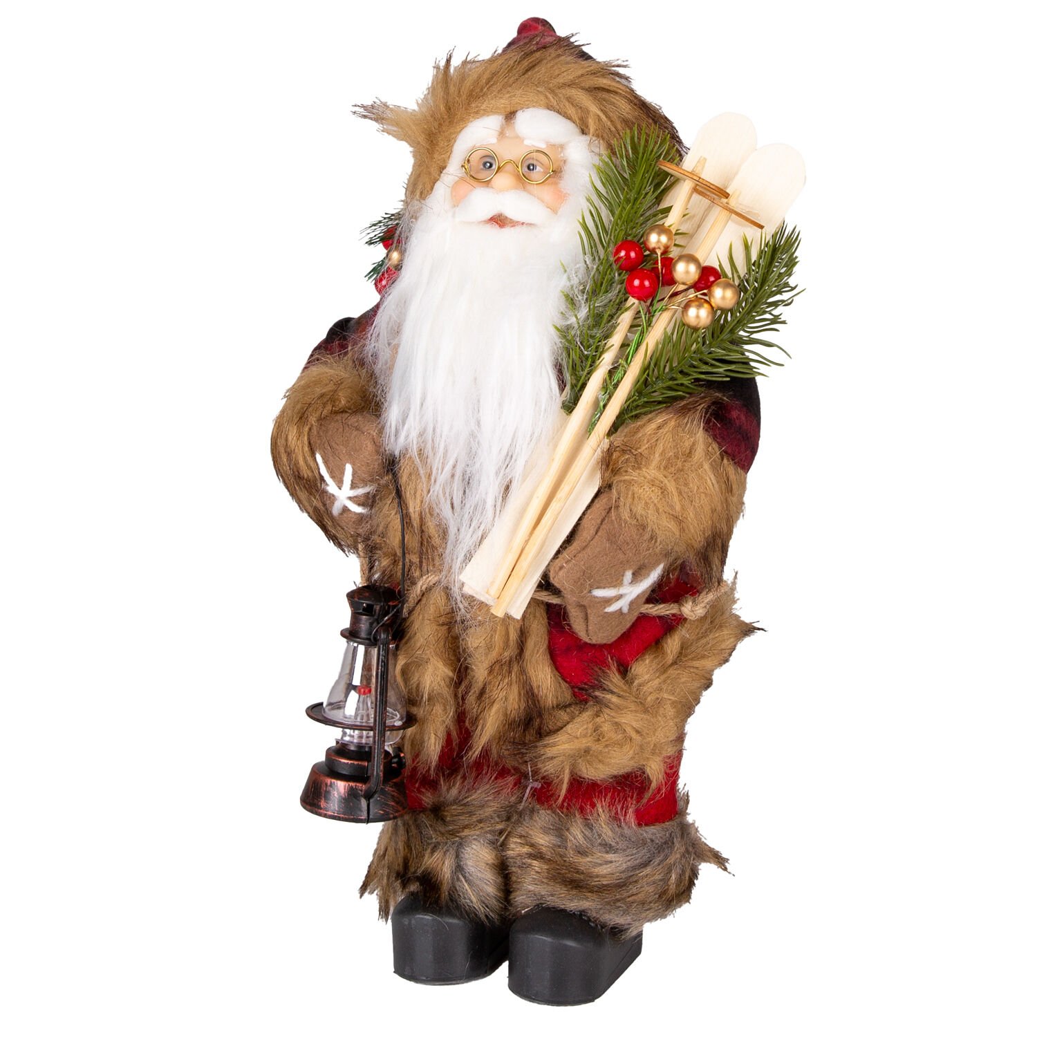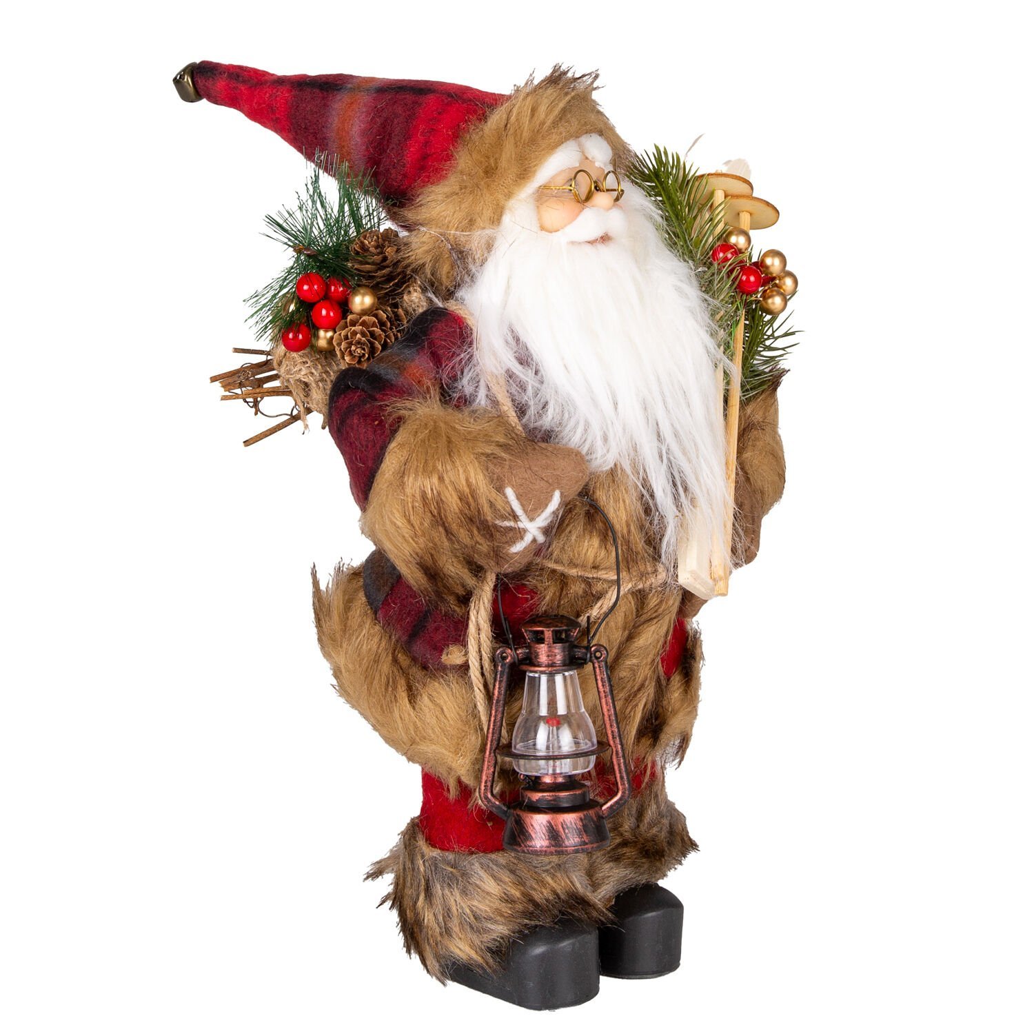 Yılbaşı Noel Baba Ekose Kumaşlı Figür (30 cm): Kırmızı-Siyah Şıklıkla Dekorasyonunuza Farklı Bir Dokunuş Katın