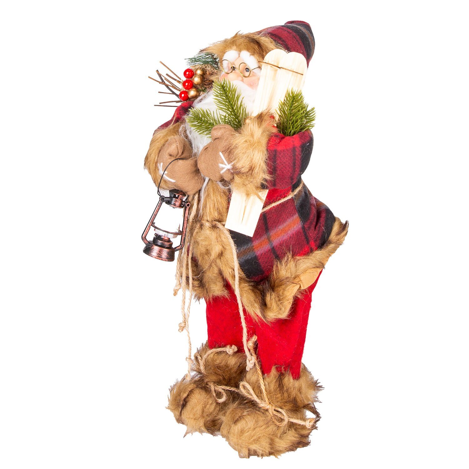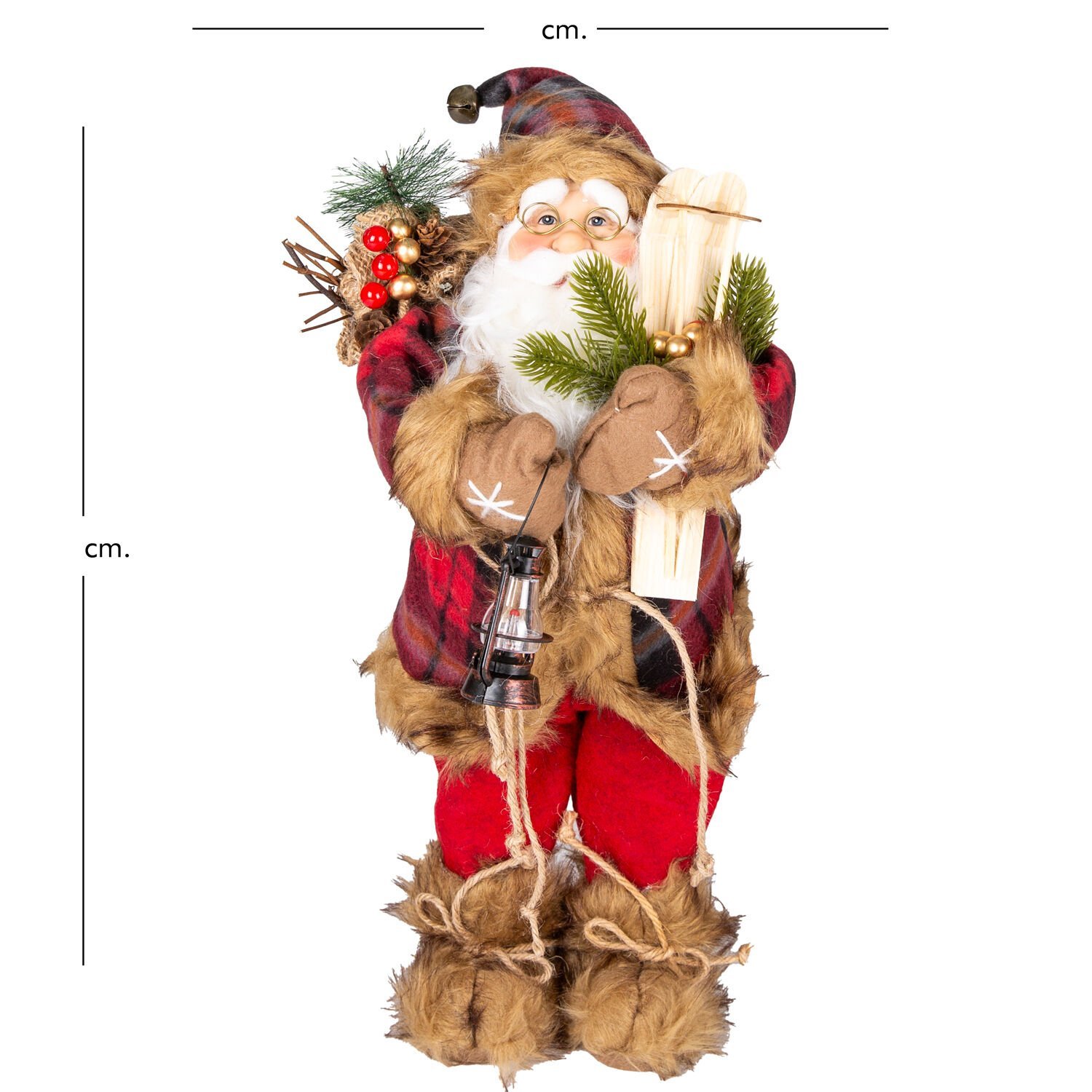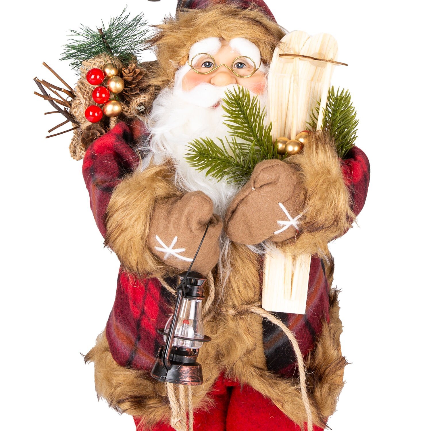 Yılbaşı Noel Baba Ekose Kumaşlı Figür (45 cm): Geleneksel Kırmızıya Kırmızı-Siyah Ekoseyle Modern Bir Yorum
