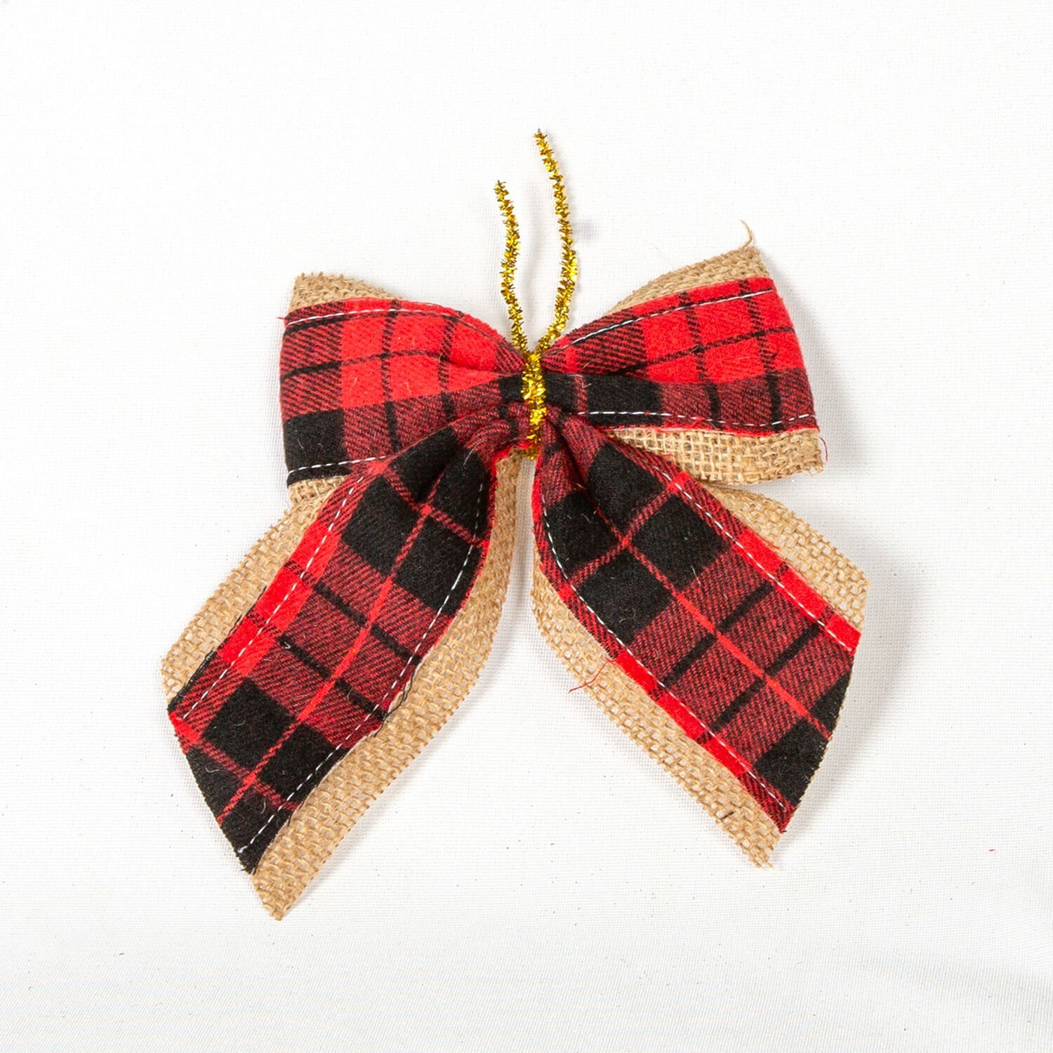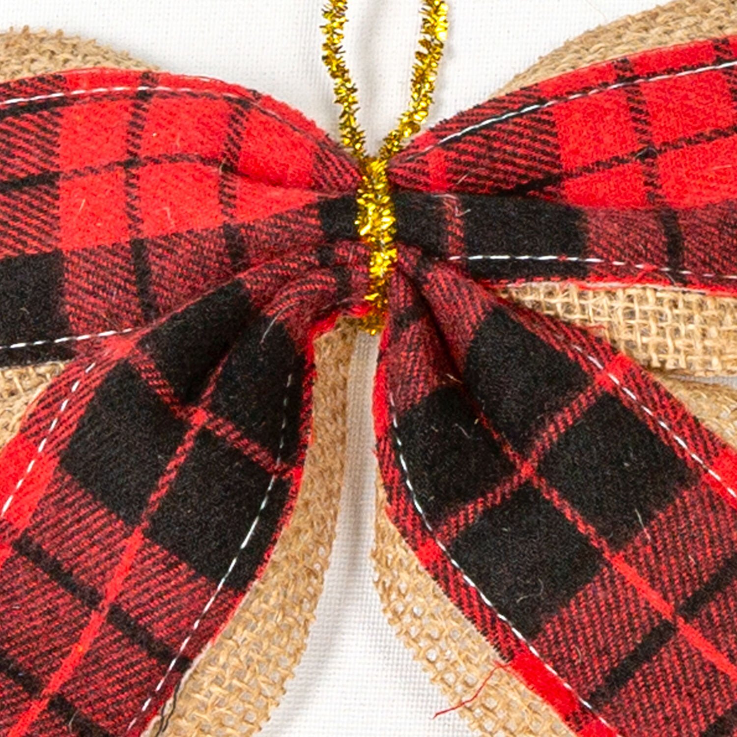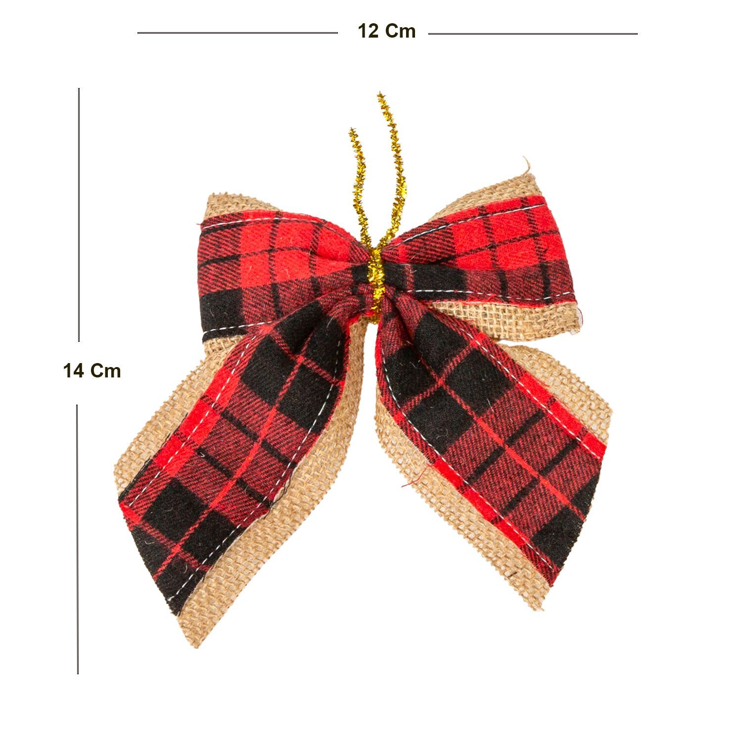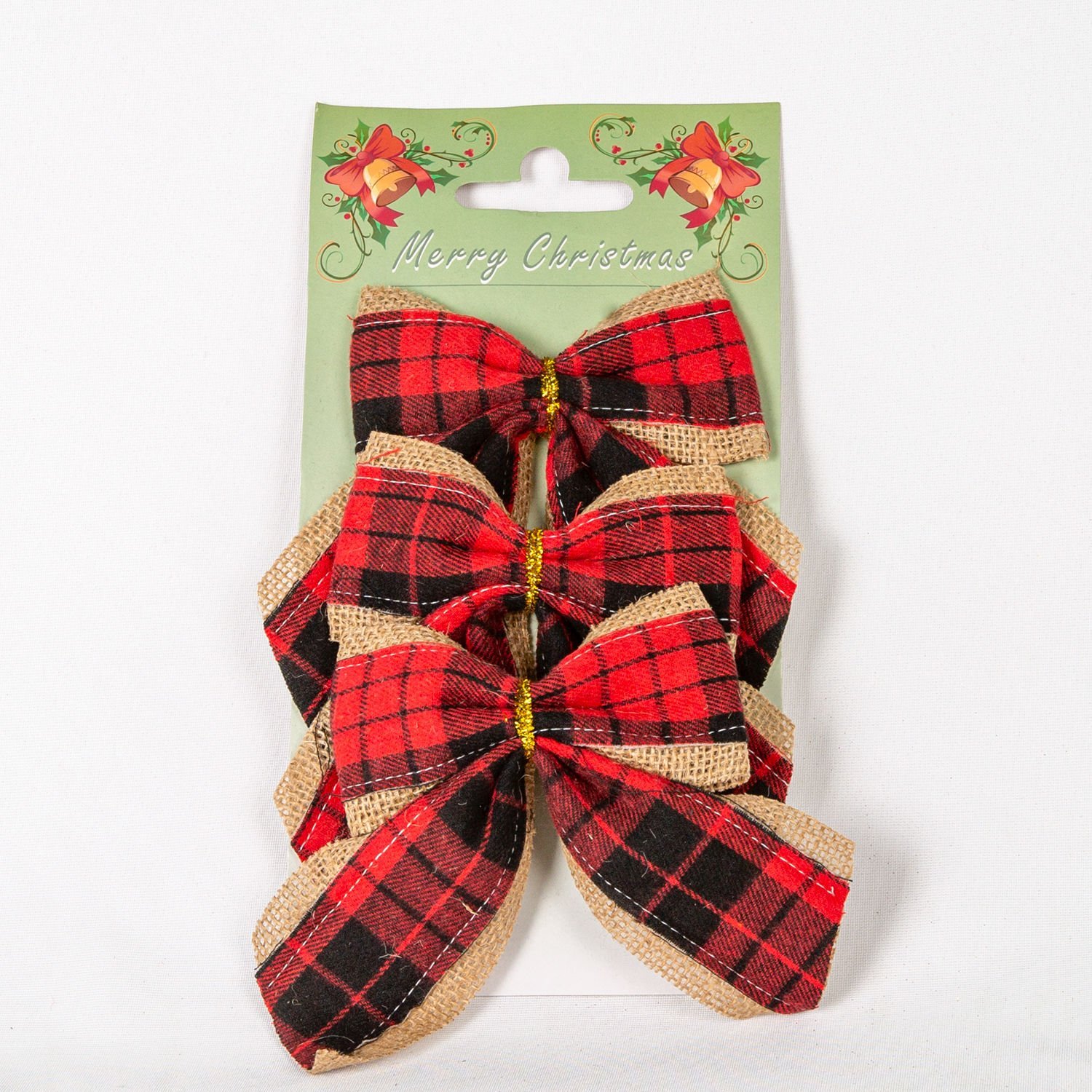 Yılbaşı Süsü, Askılı Fiyonk, Ekose Desenli, Kırmızı-Siyah - 3'lü Paket, 12x14 cm