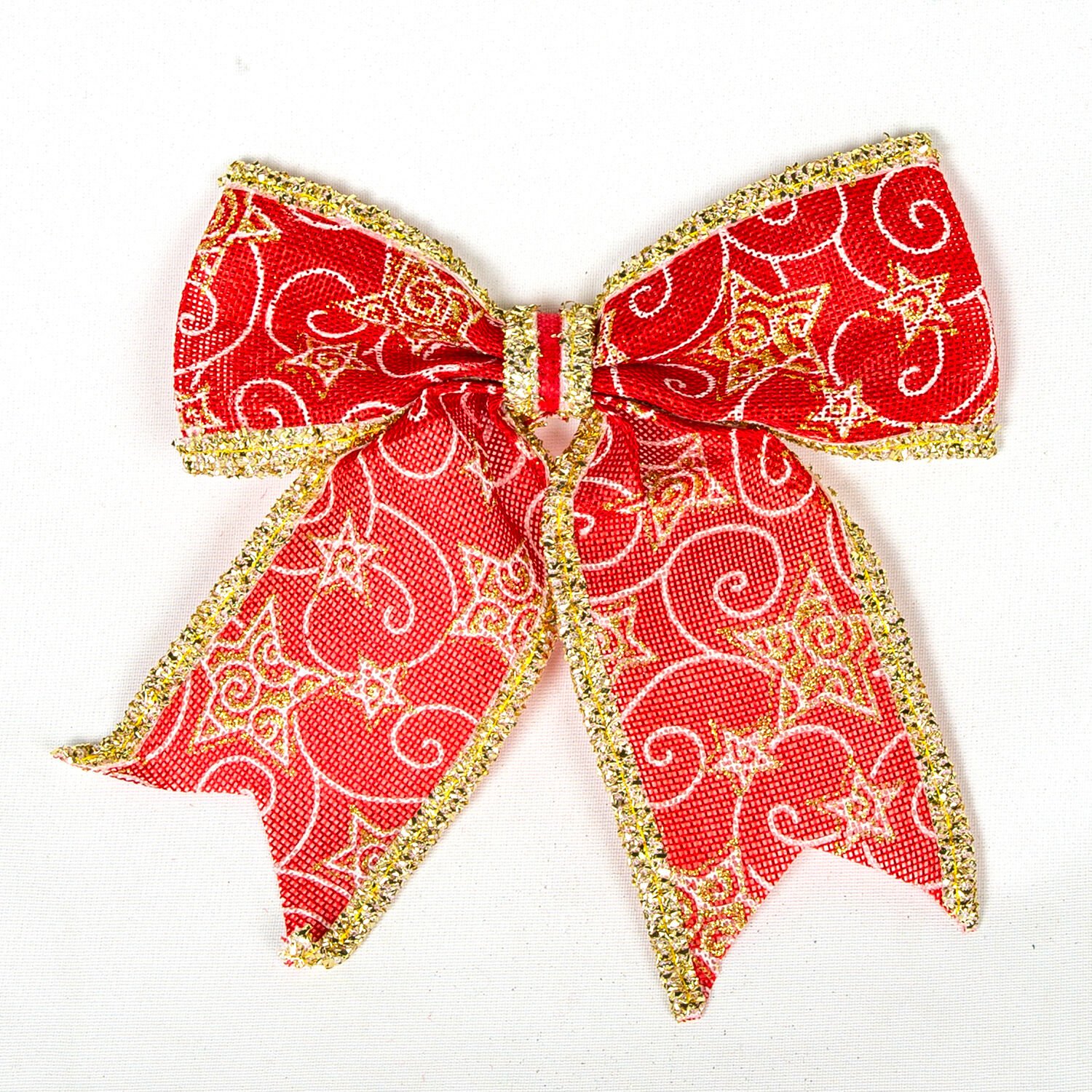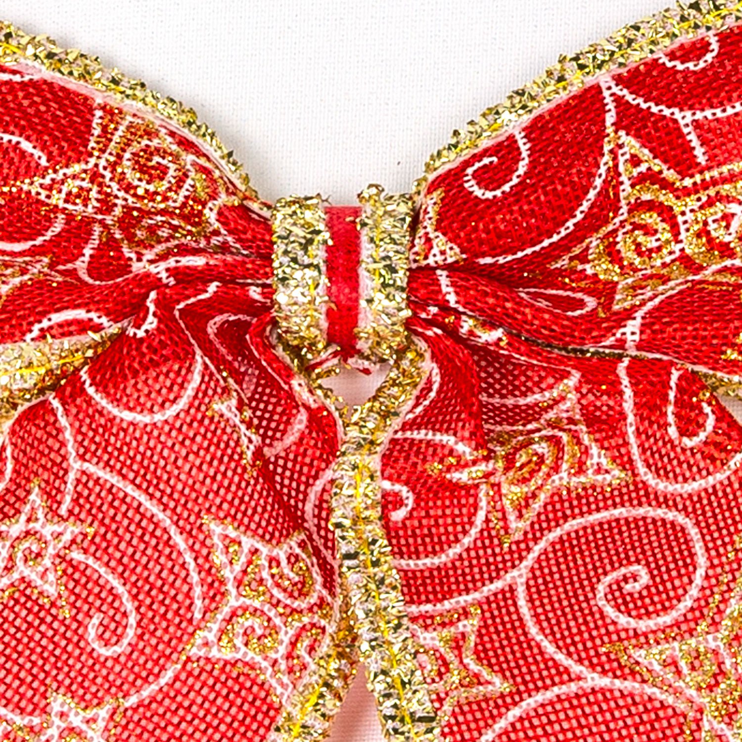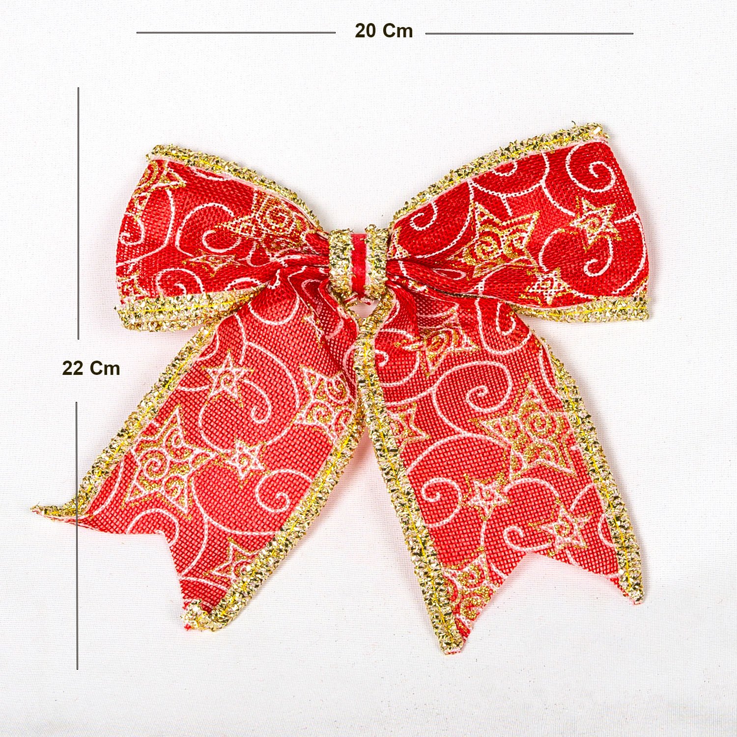Yılbaşı Süsü Askılı Yıldız Desenli Fiyonk Kırmızı-Gold 20x22 Cm.