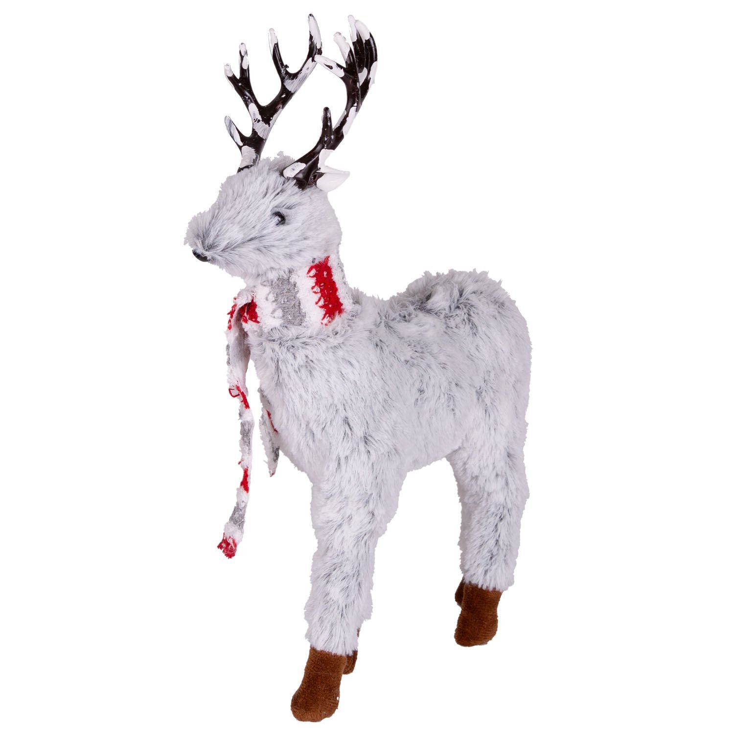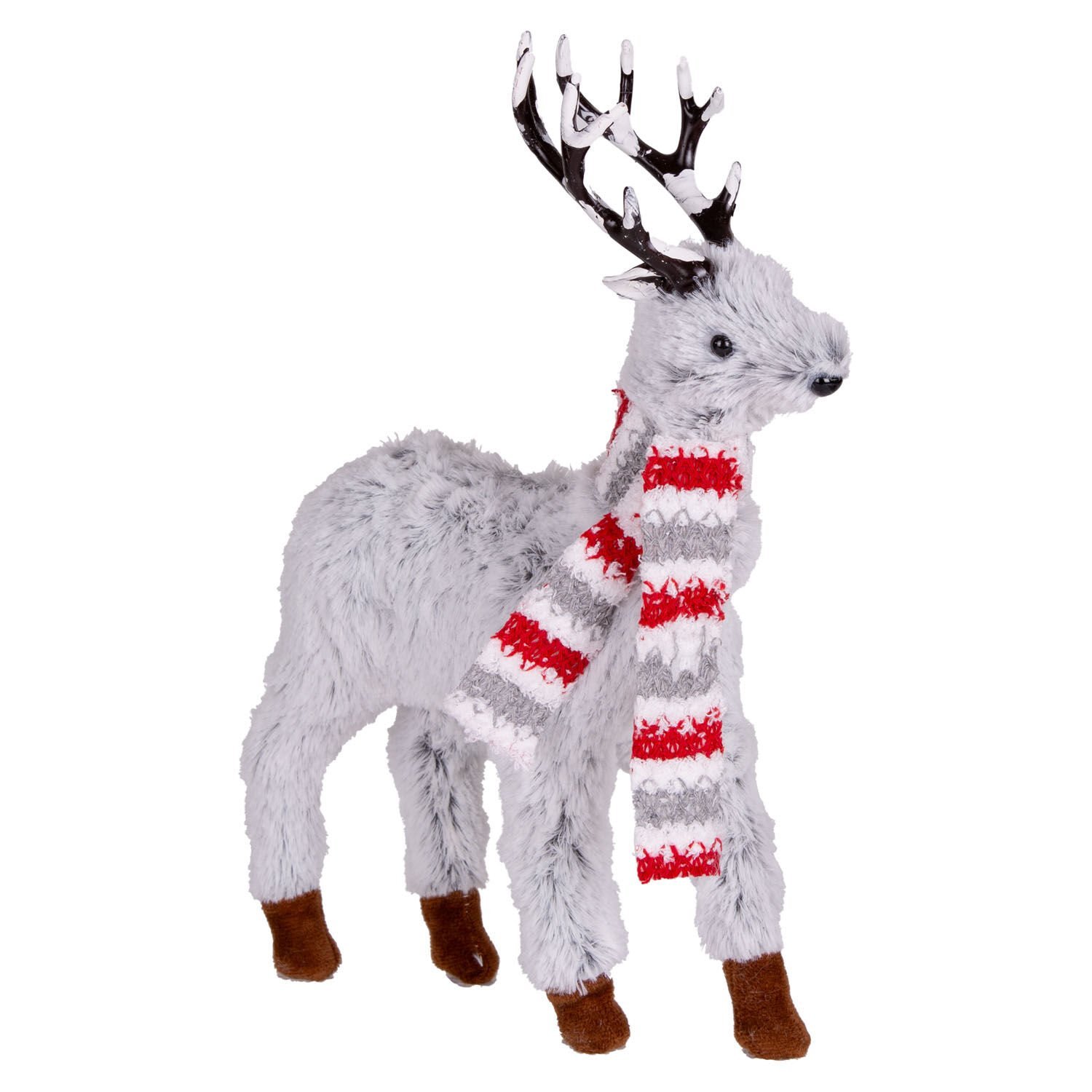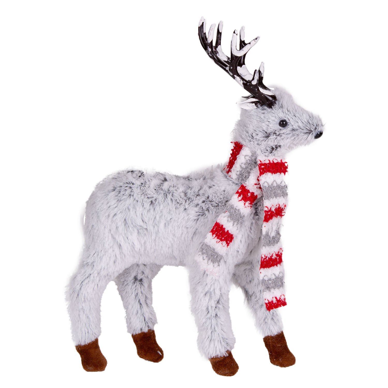 Yılbaşı Süsü Atkılı Geyik Figürü (Gri, 20x30 cm): Evinize Huzurlu ve Şık Bir Kış Atmosferi
