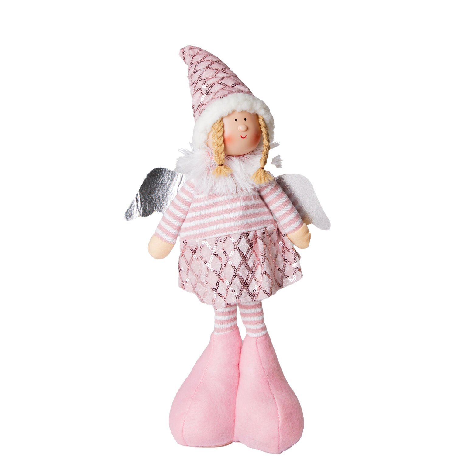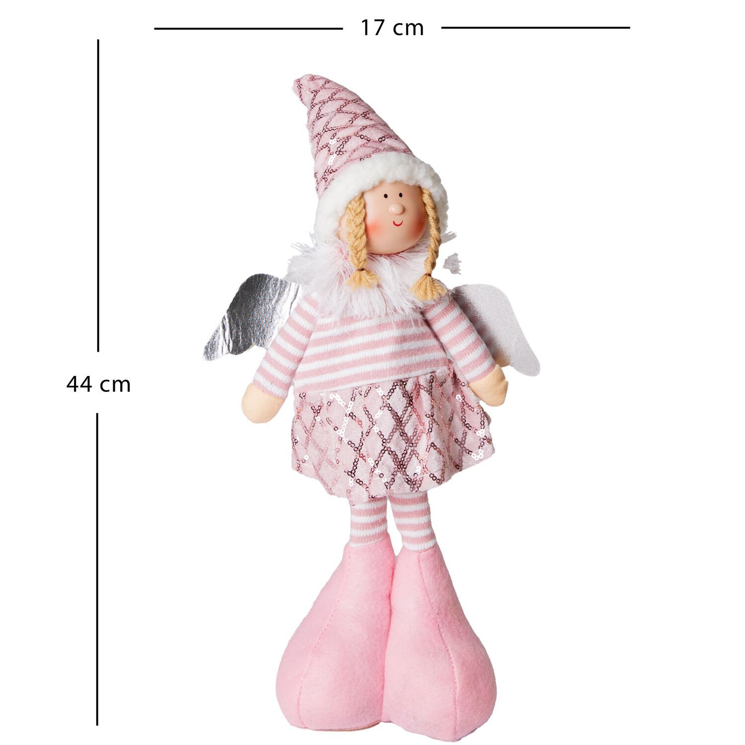 Yılbaşı Süsü, Ayakta Kanatlı Peri Figürü, Şerit Kazaklı- Pembe Etekli - 17x44 cm