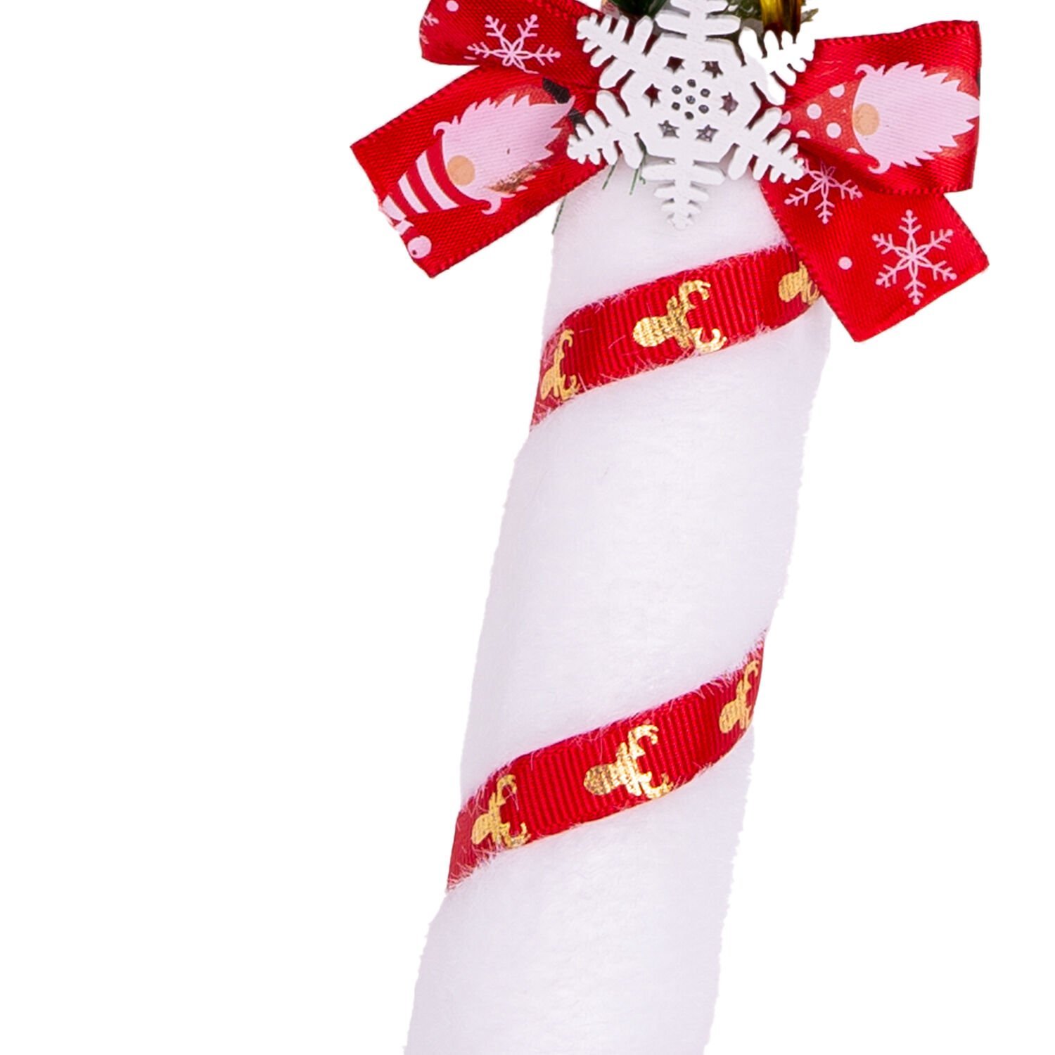 Yılbaşı Süsü, Baston, Yılbaşı Dekorlu, Kırmızı-Beyaz - 10x26 cm