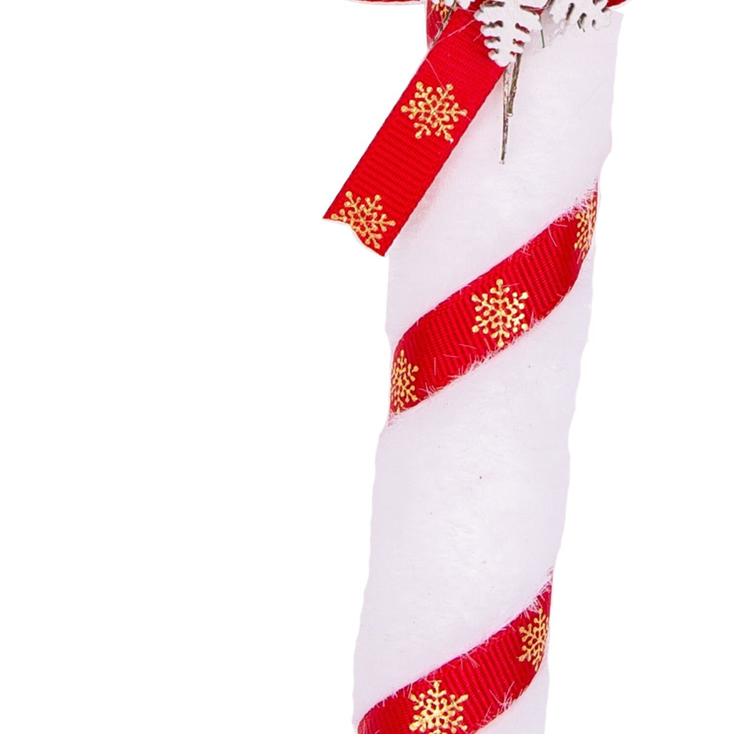 Yılbaşı Süsü, Baston, Yılbaşı Dekorlu, Kırmızı-Beyaz - 9x21 cm