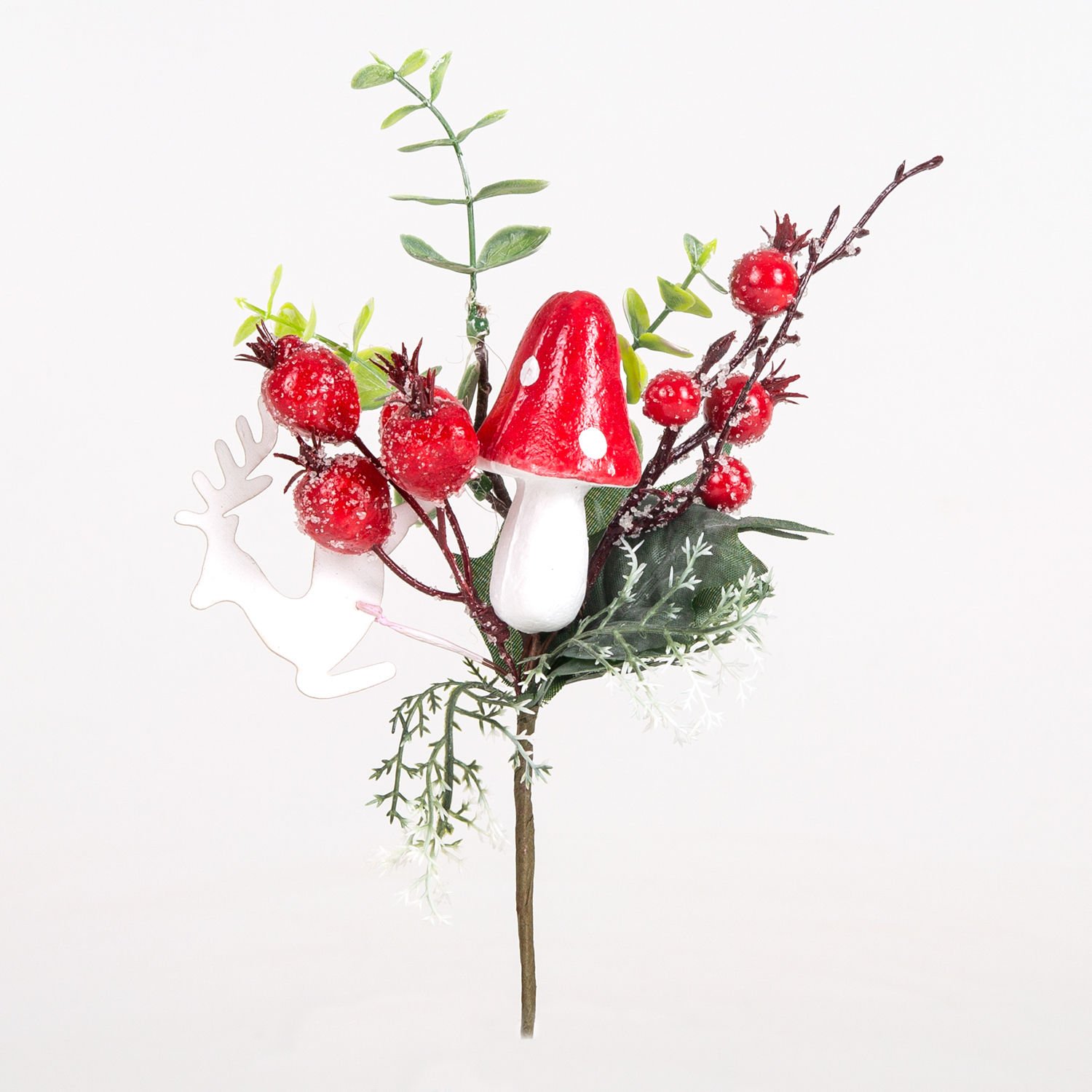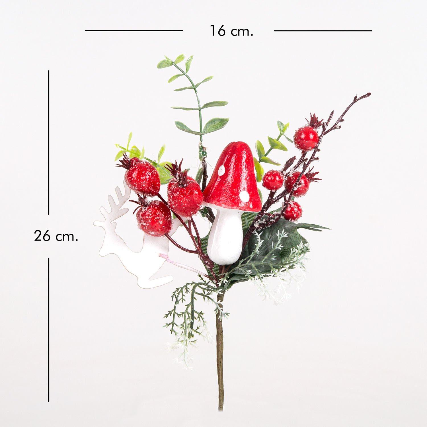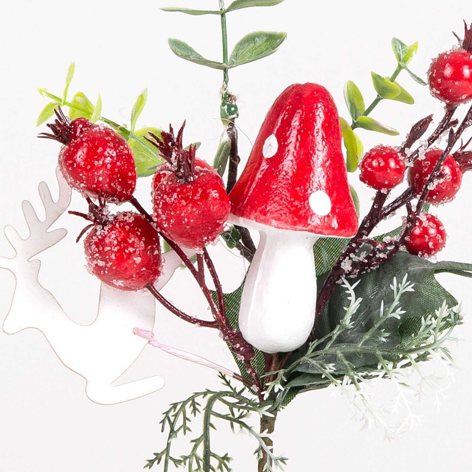 Yılbaşı Süsü, Berry Aranjman, Yeşil-Kırmızı - Karlı, Geyik Mantar Nar Figürlü, 16 x 26 cm
