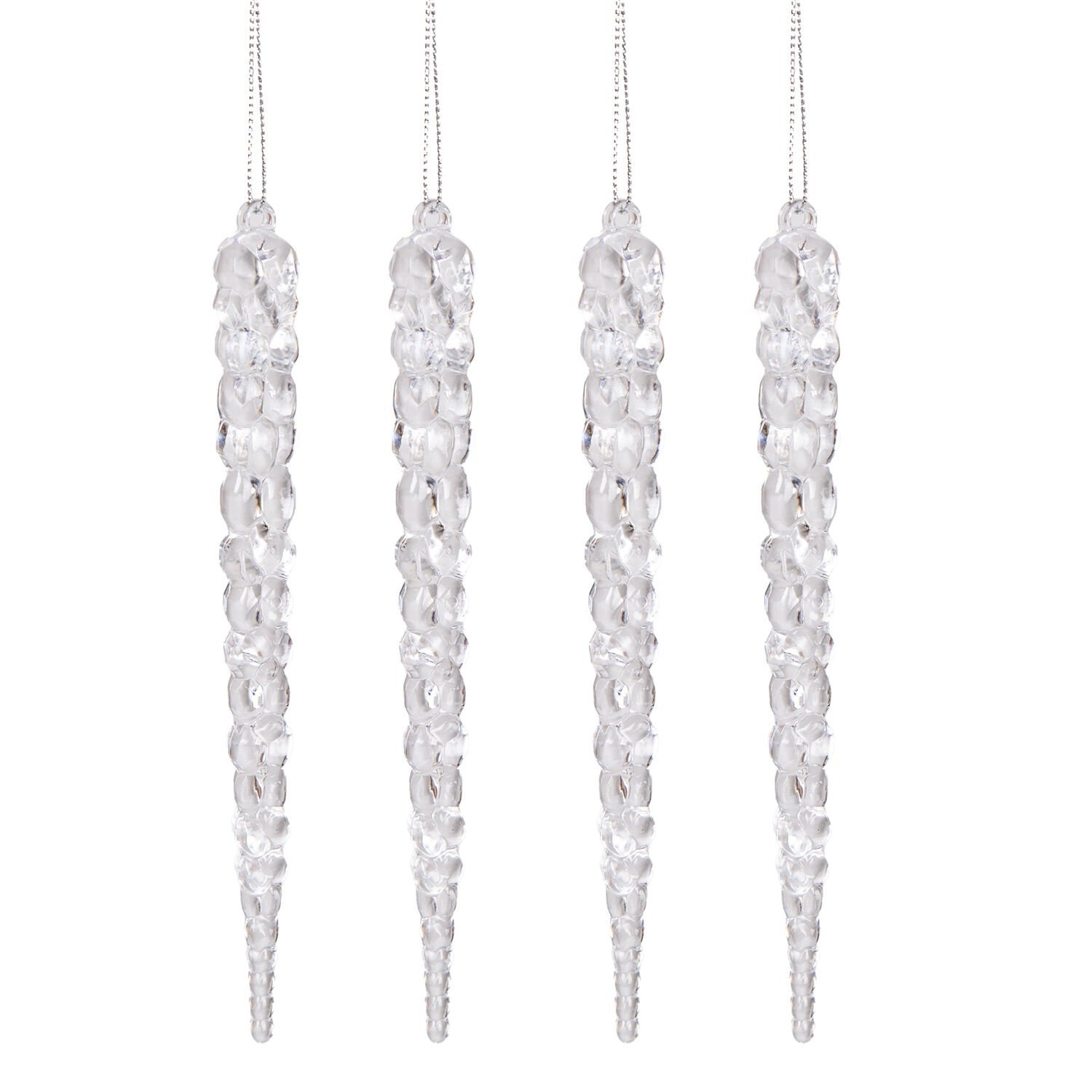 Yılbaşı Süsü, Buz Sarkıt, Şeffaf - Asmalı, 4'lü Paket, 2x17 cm
