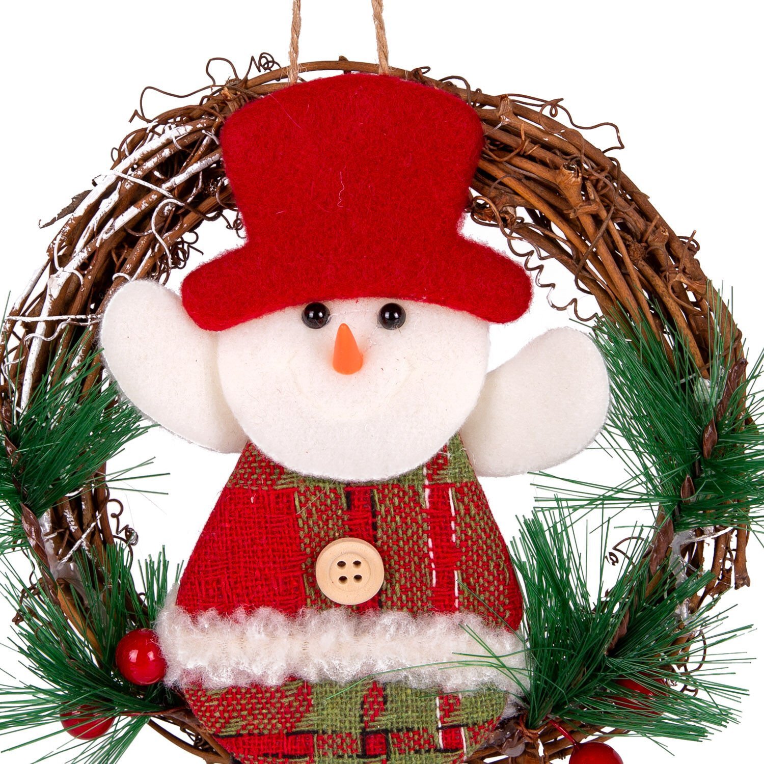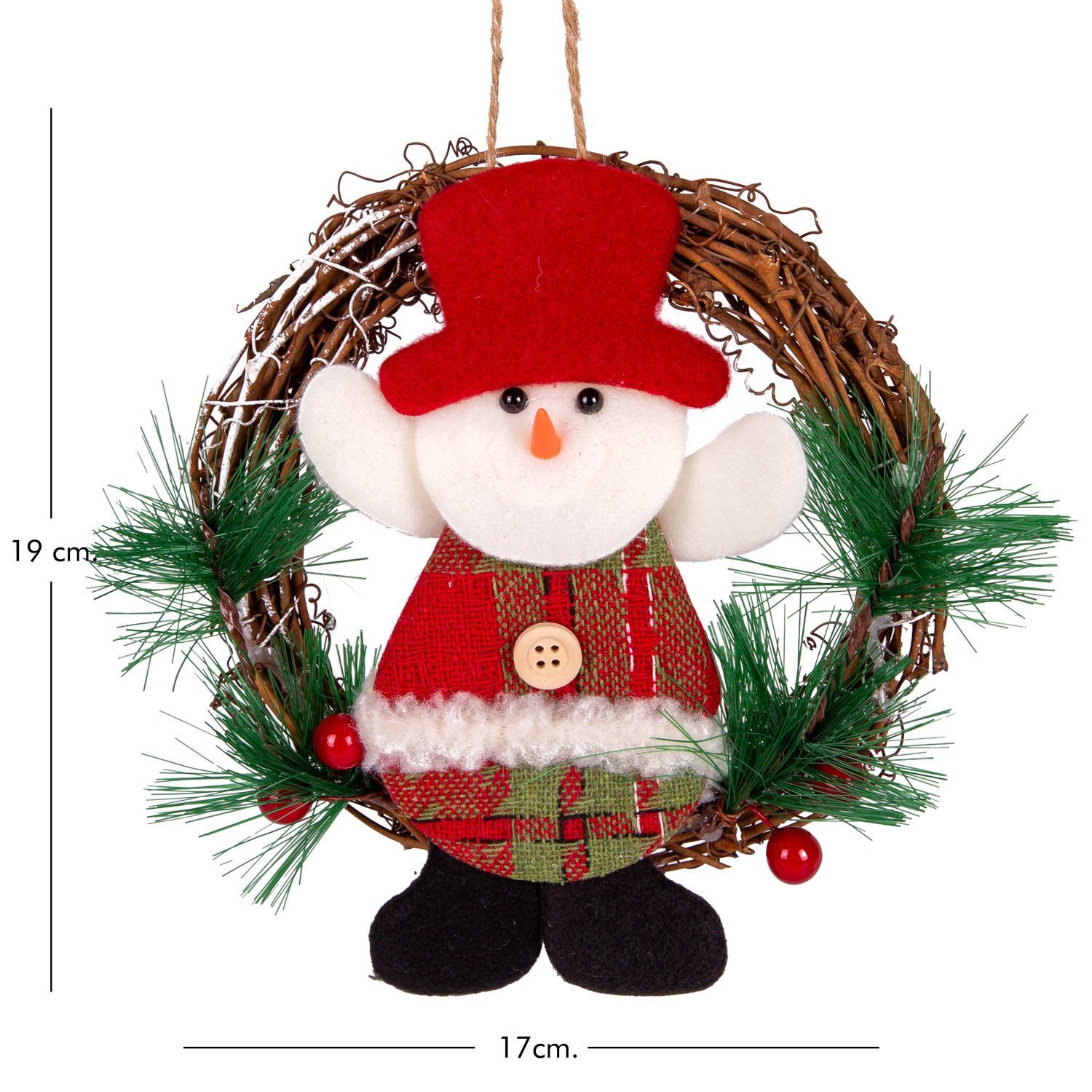 Yılbaşı Süsü, Çelenk, Ekoseli, Kardan Adam Figürlü, Kırmızı - 15x15 cm