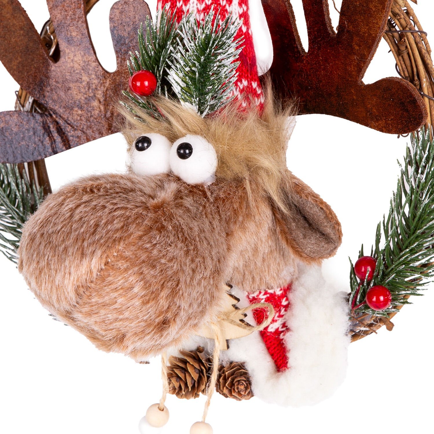 Yılbaşı Süsü, Çelenk, Geyik Figürlü, Kahverengi - 20x15x30 cm