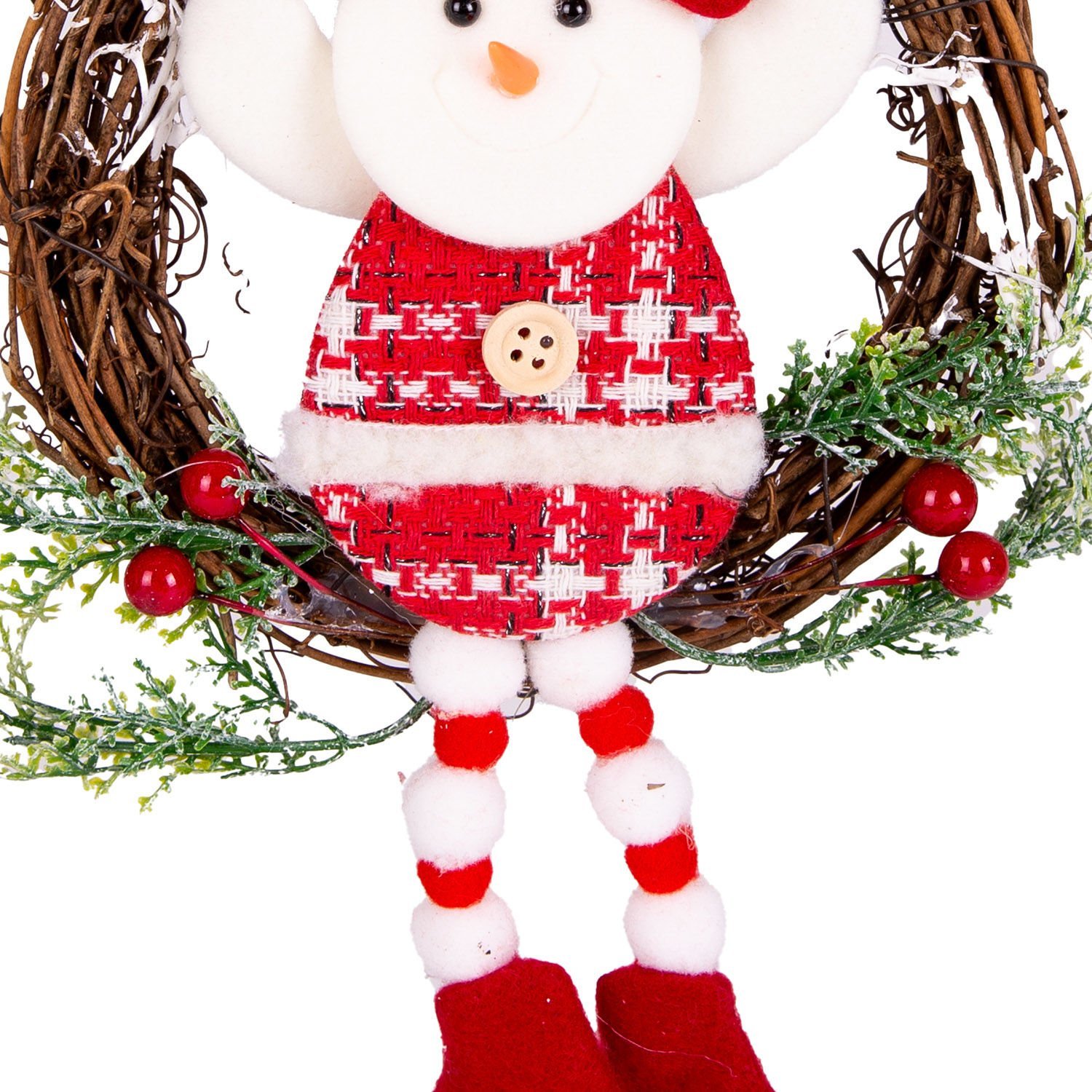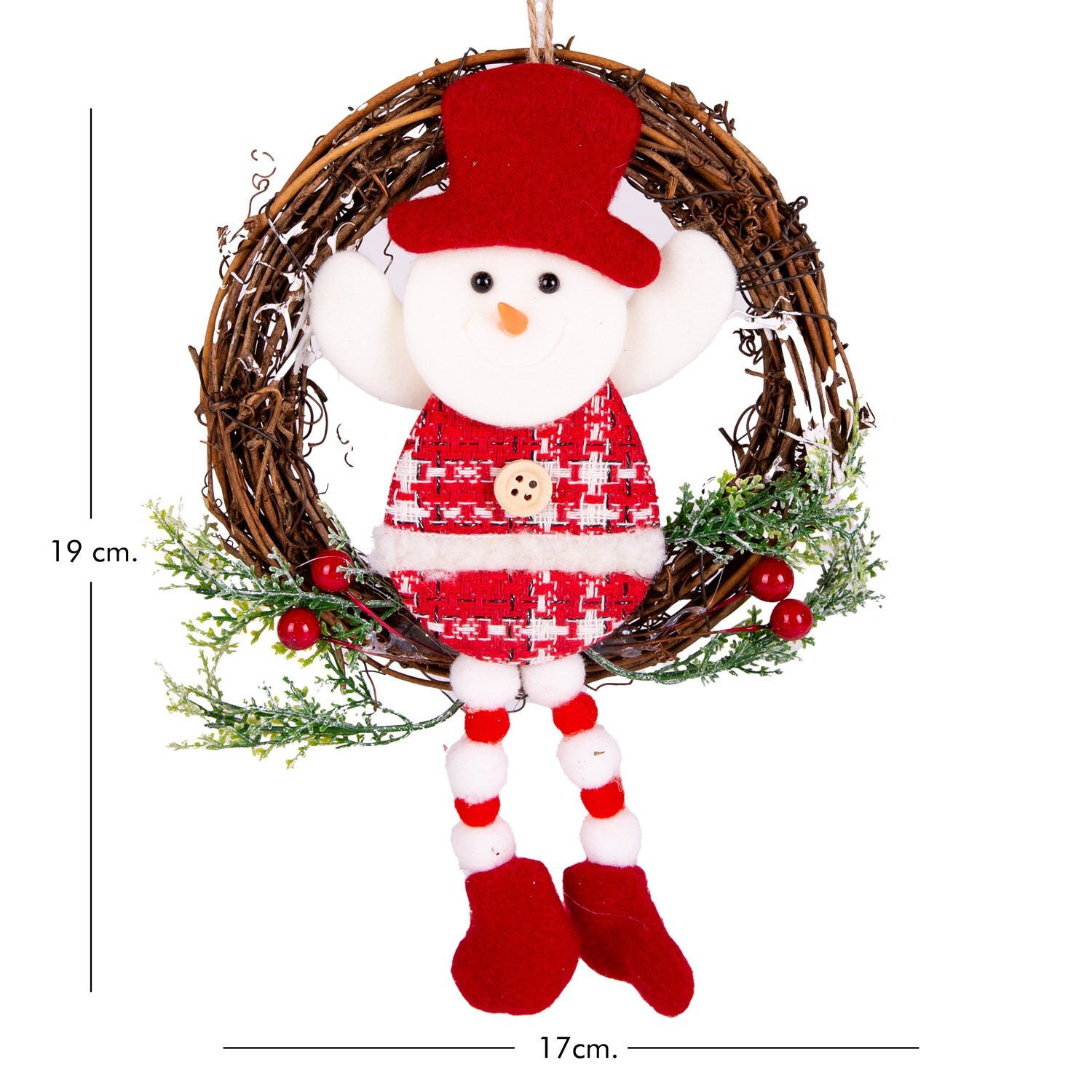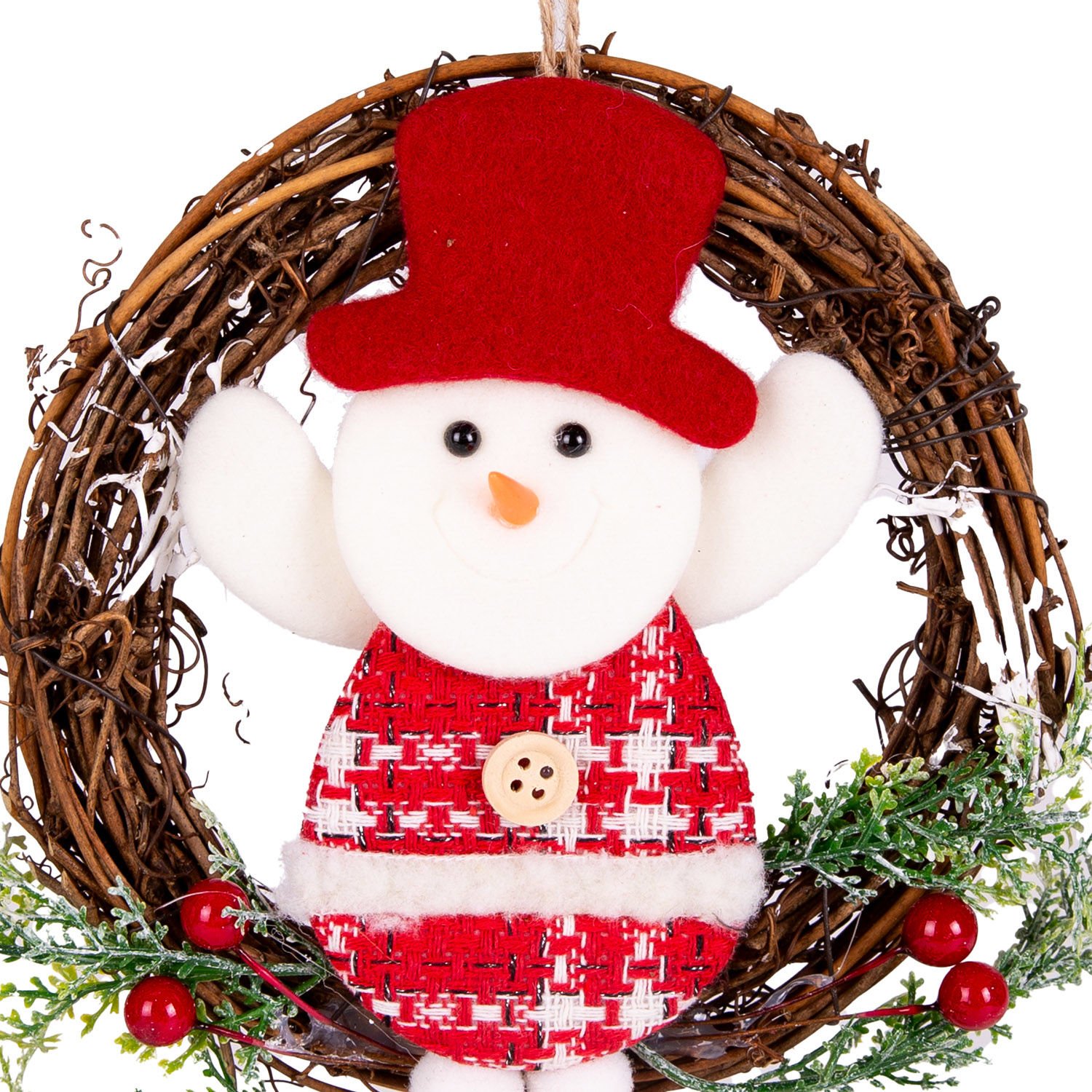 Yılbaşı Süsü, Çelenk, Kardan Adam Figürlü, Kırmızı - 15x15 cm