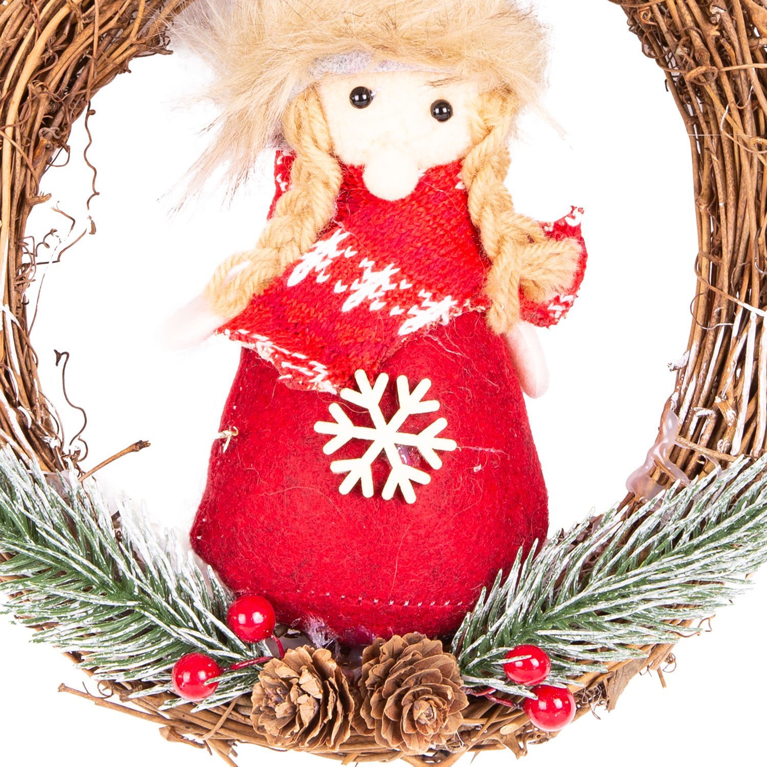 Yılbaşı Süsü, Çelenk, Kardan Kadın Figürlü, Kırmızı - 20x20 cm