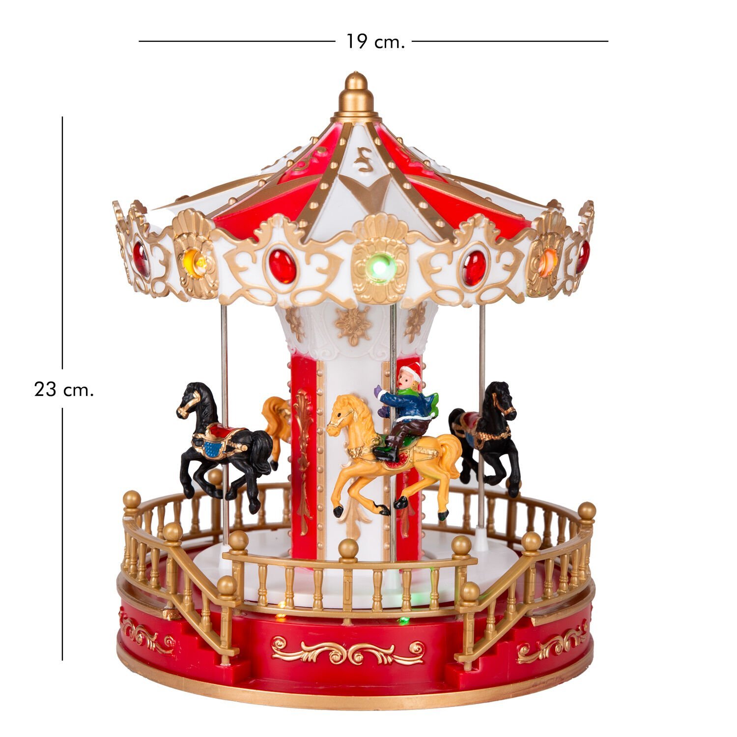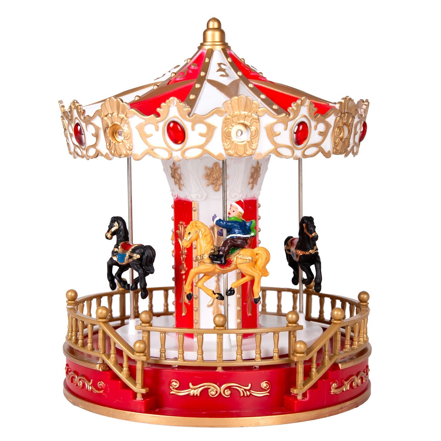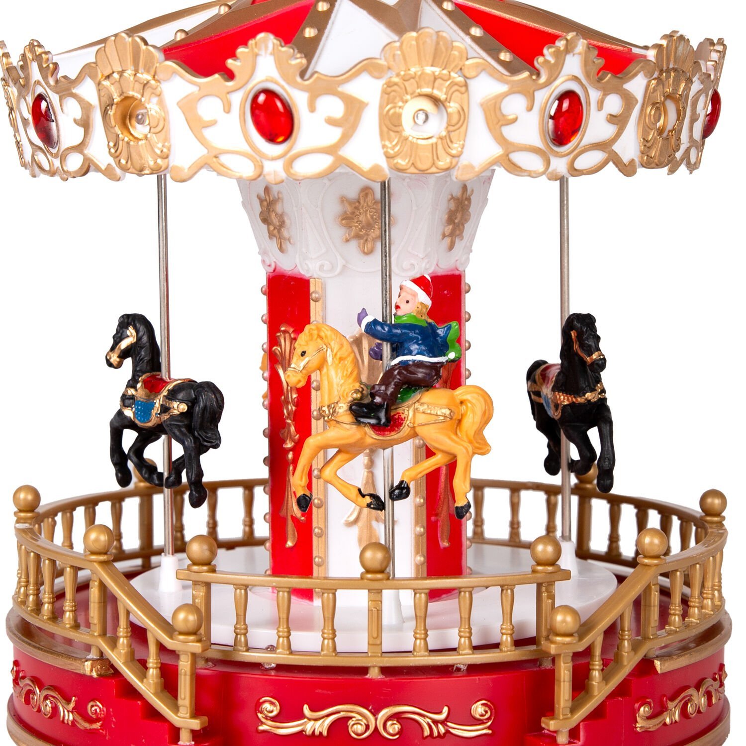 Mekanik hareket (dönen atlar), klasik yılbaşı melodileri ve renkli LED ışıklar ile tamamlanmış, etkileşimli ve canlı bir atmosfer sunar. -
