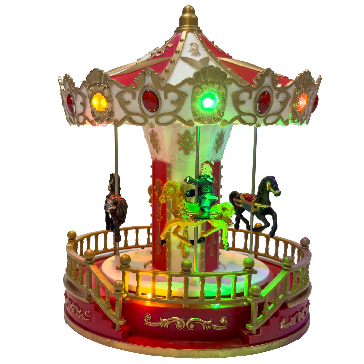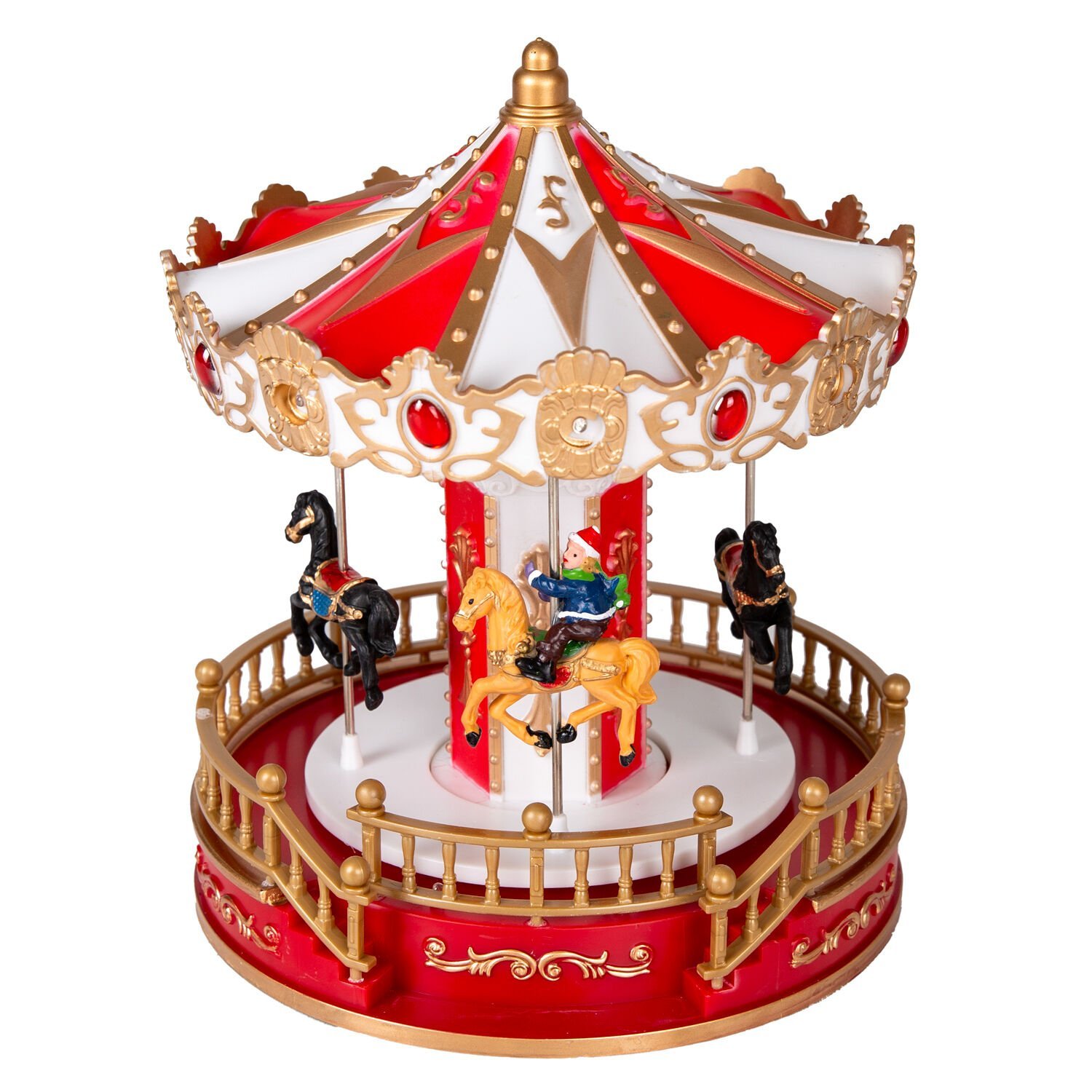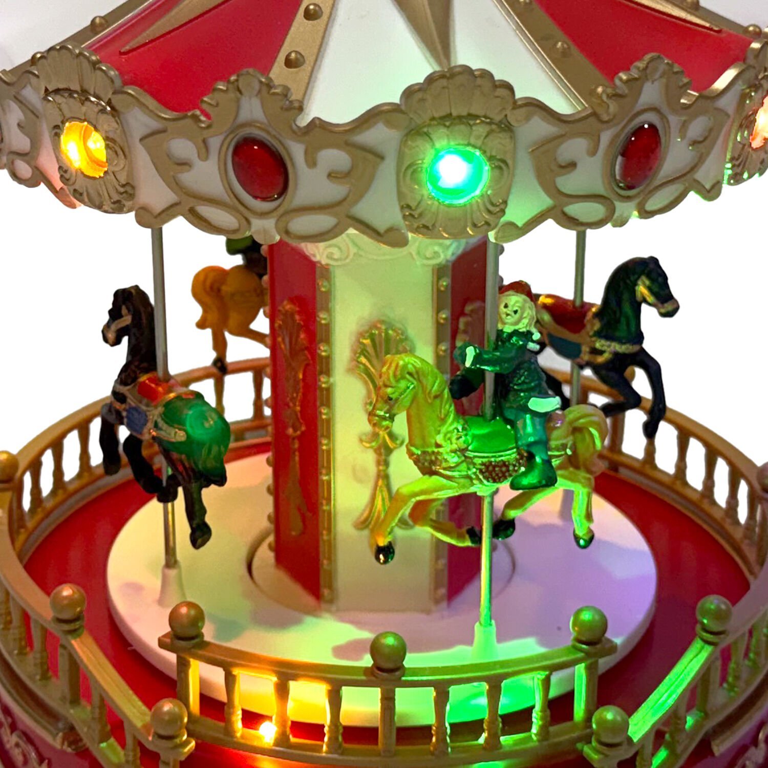 Mekanik hareket (dönen atlar), klasik yılbaşı melodileri ve renkli LED ışıklar ile tamamlanmış, etkileşimli ve canlı bir atmosfer sunar. -