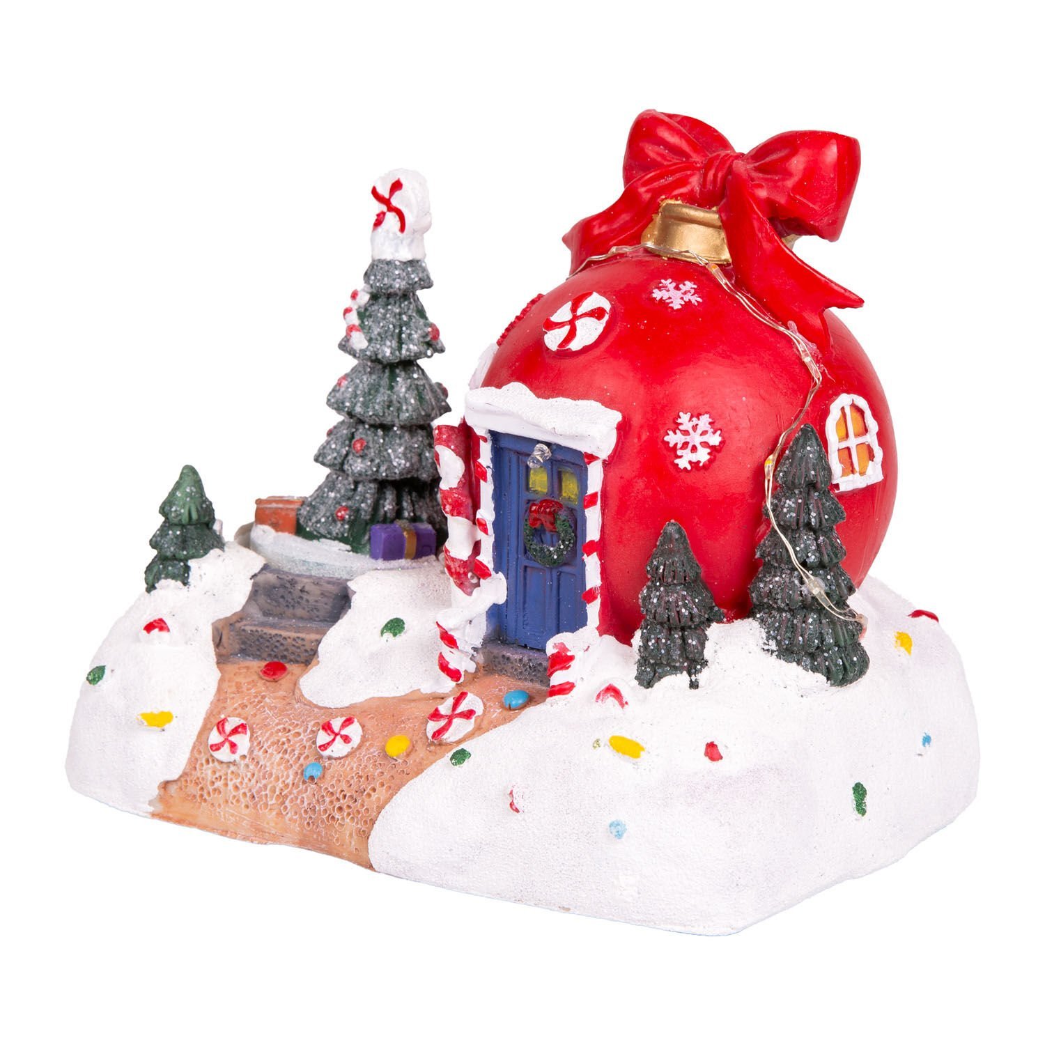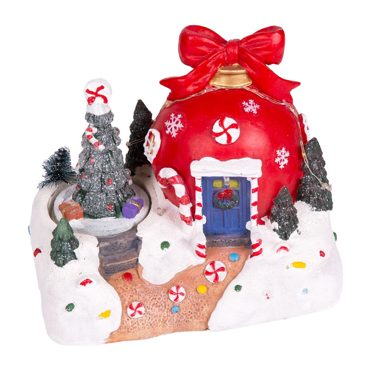 Yılbaşı Süsü, Dekor Köy Evi Figürlü, Hareketli, Müzikli, Işıklı, Kırmızı-Beyaz - 17x18 cm
