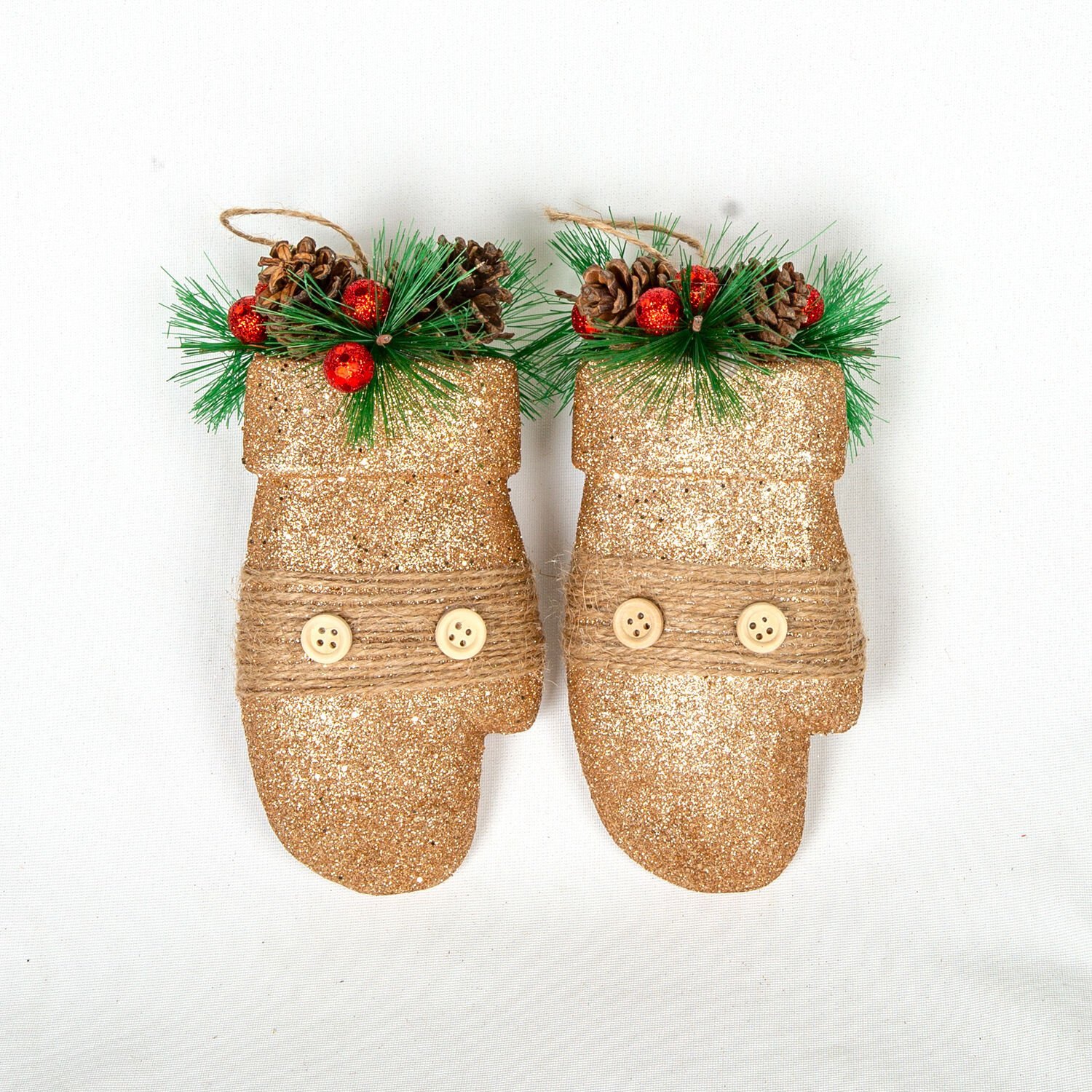 Yılbaşı Süsü Eldiven Seti (Berry'li, Dore, 12x18,5 cm, 2'li): Ağacınızda Dore Rengin Şıklığı ve Kış Sıcaklığı
