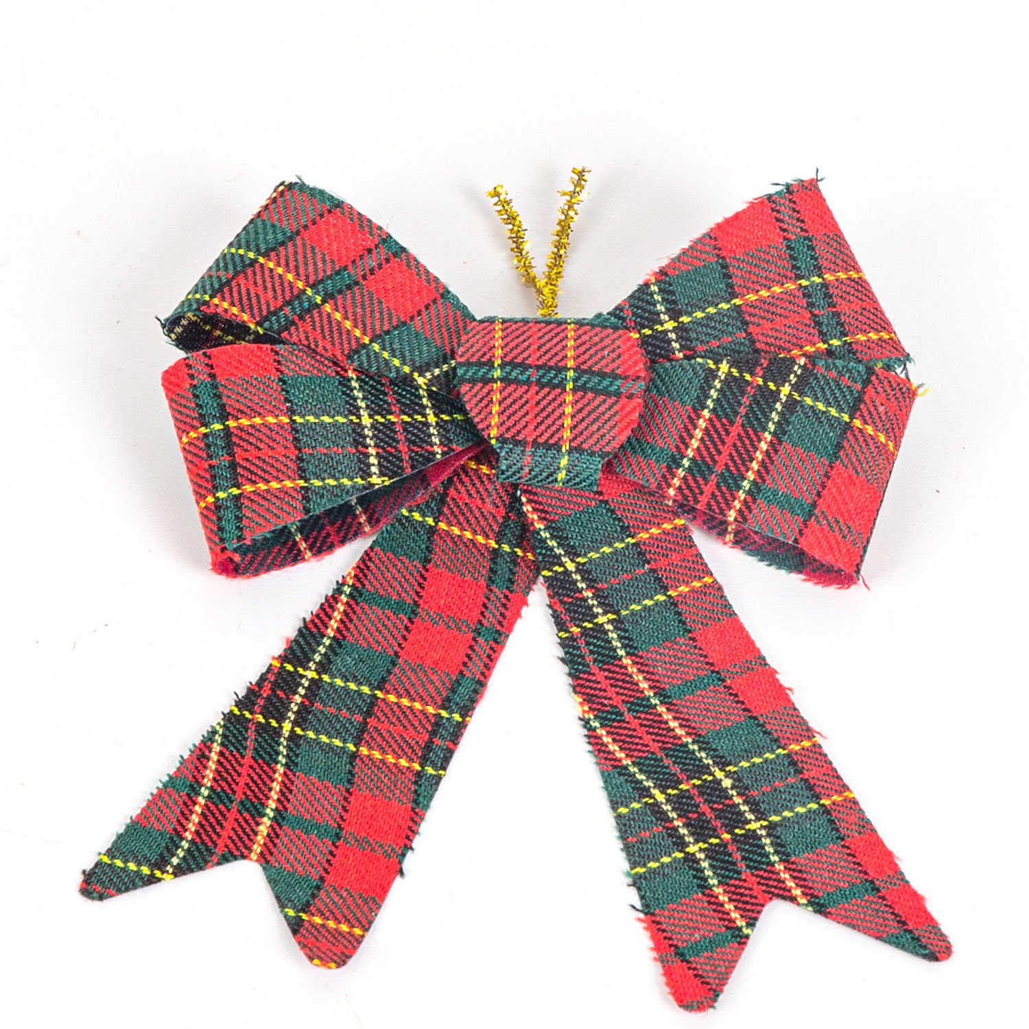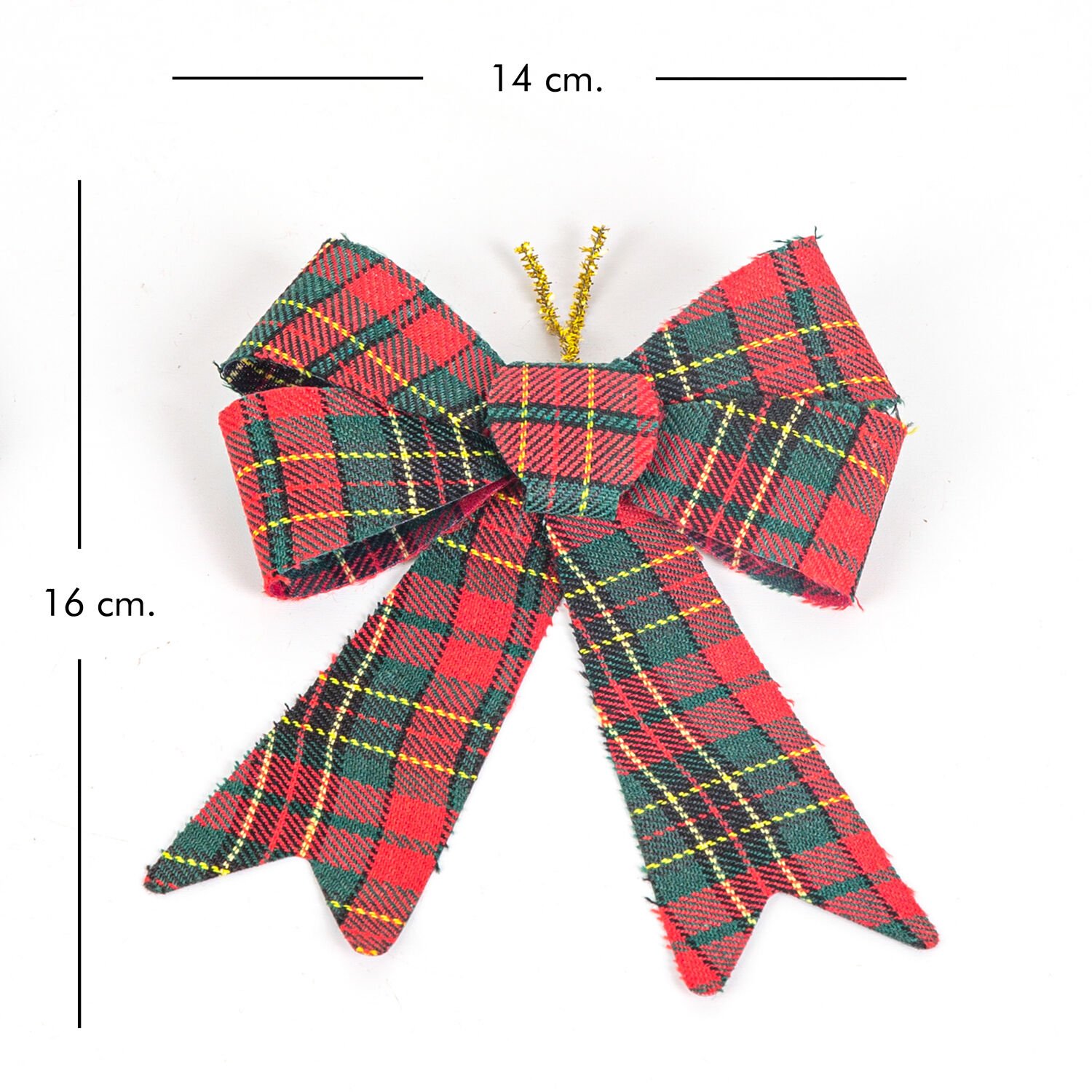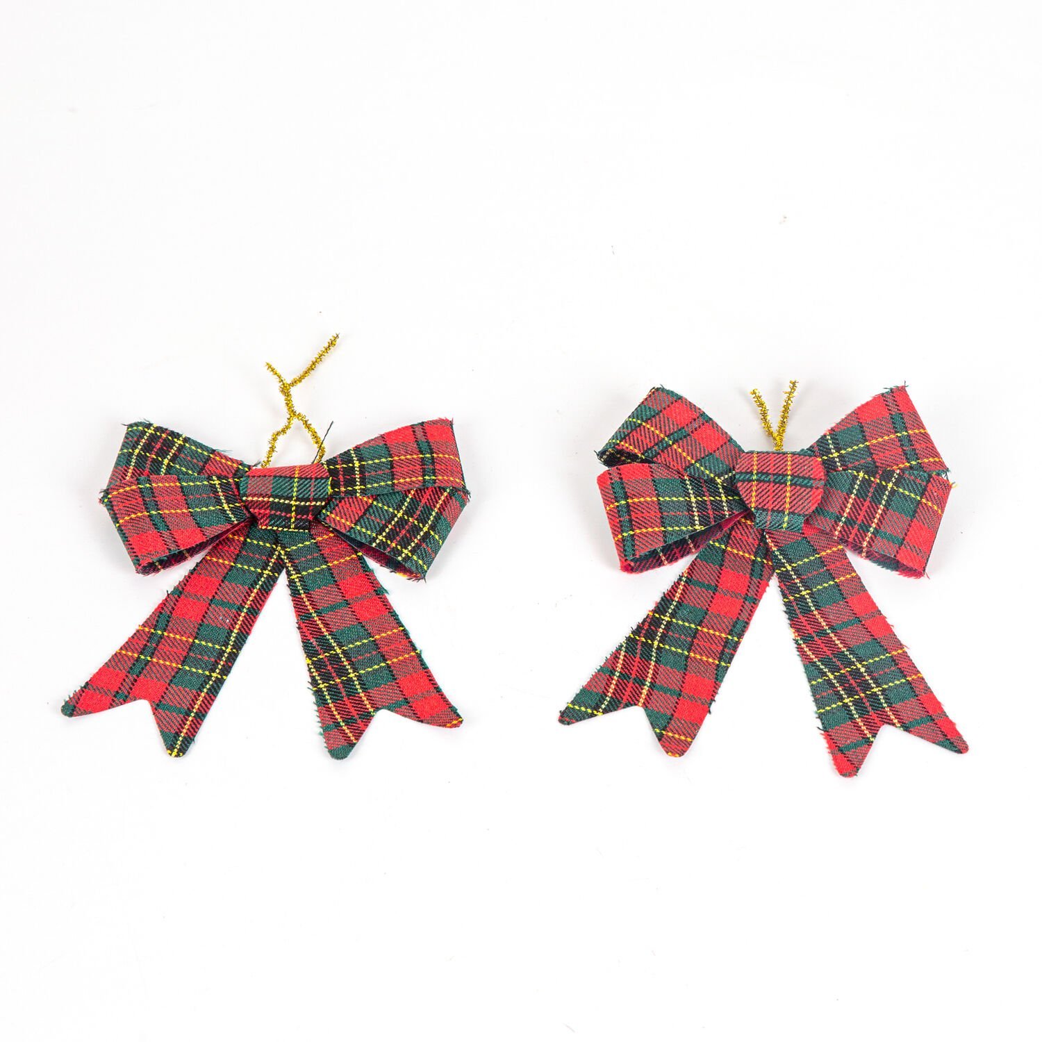 Yılbaşı Süsü, Fiyonk, Ekose Desenli, Kırmızı-Yeşil - 2'li Paket, 14 x 16 cm