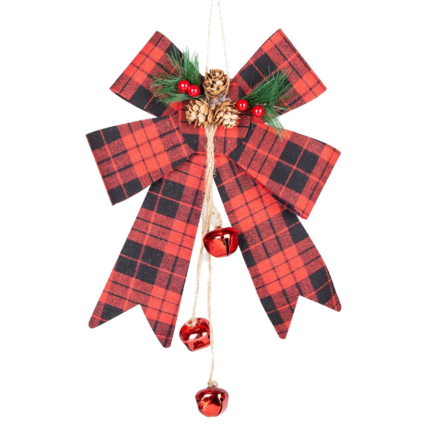 Yılbaşı Fiyonk Süsü (20x27 cm, Kırmızı-Siyah Ekose): Kapı ve Çelenk Süslemelerinde Klasik ve Şık Bir Dokunuş