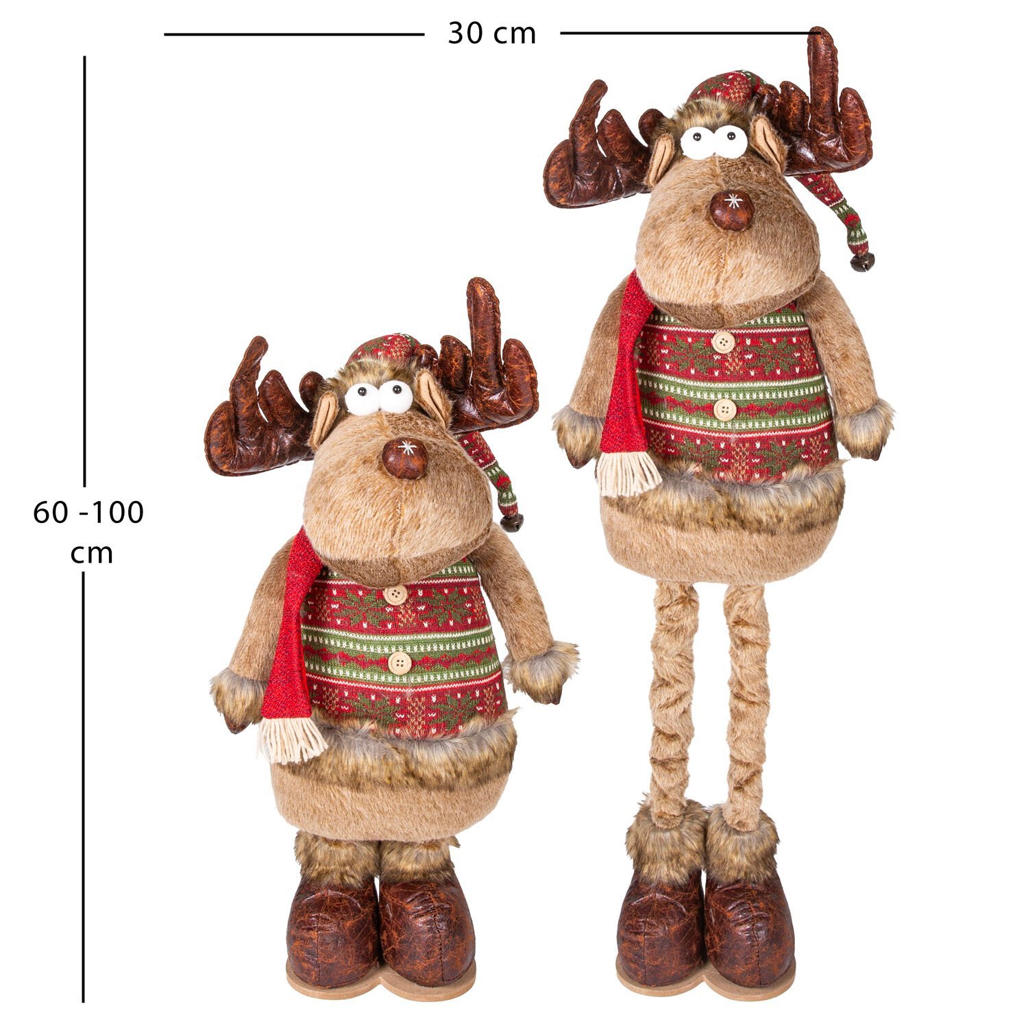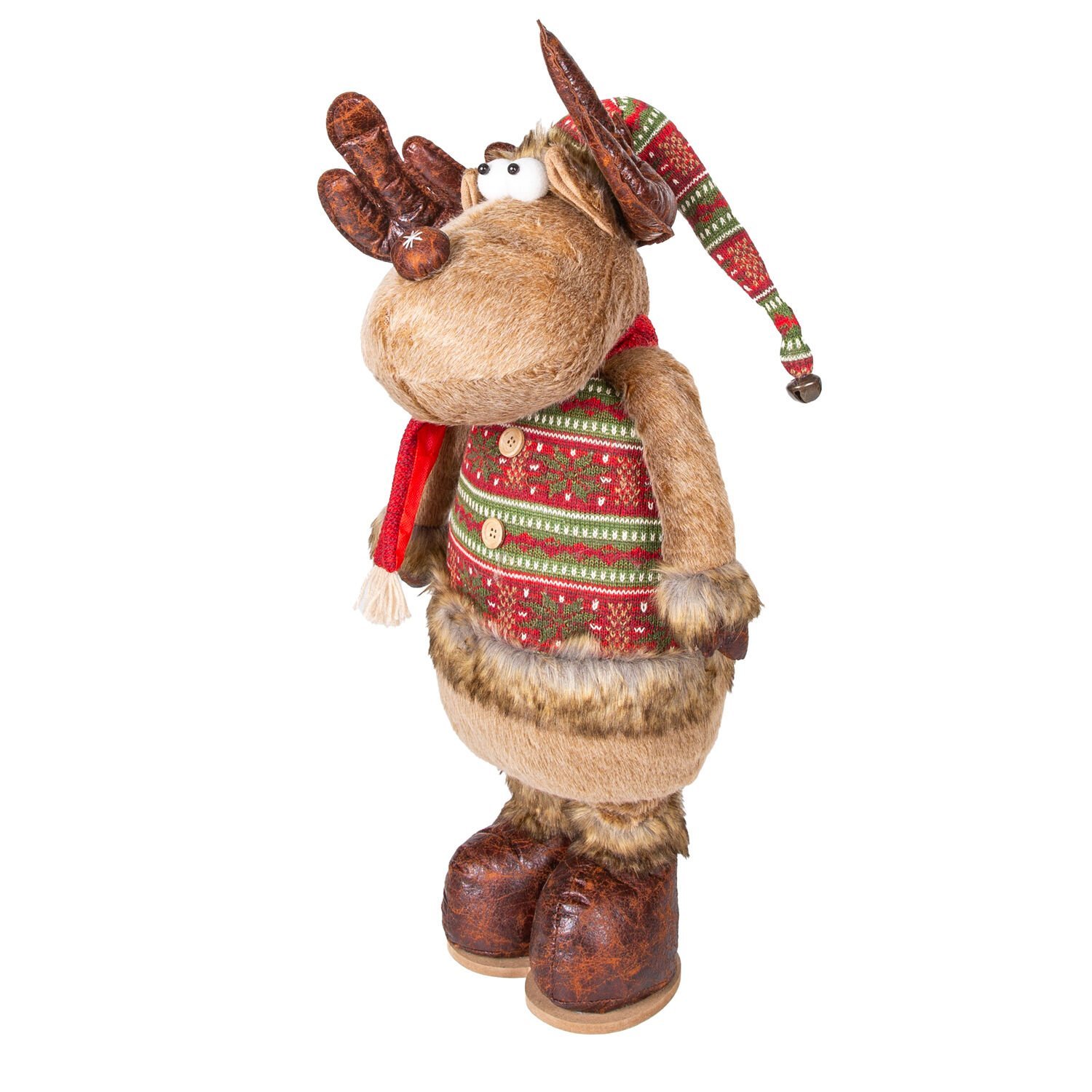Yılbaşı Süsü, Geyik Adam, Kahverengi - Uzayan Ayaklı, Kırmızı Atkılı, 30x60-100 cm