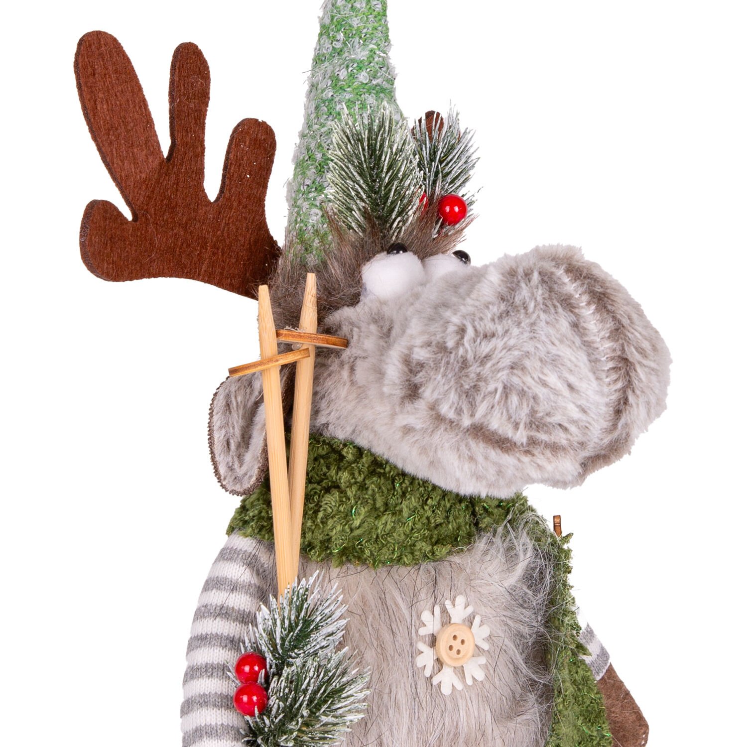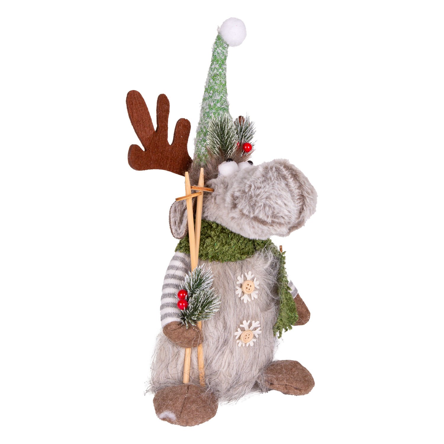 Yılbaşı Süsü Geyik Figürü Batonlu Yeşil-Gri 18x11x40 Cm.
