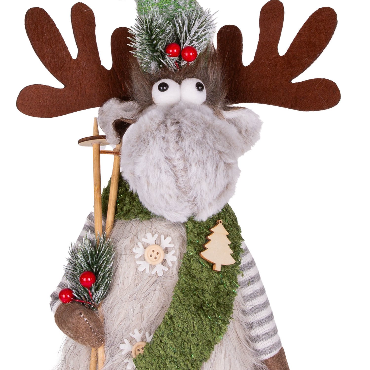 Yılbaşı Süsü Geyik Figürü Batonlu Yeşil-Gri 20x11x64 Cm.