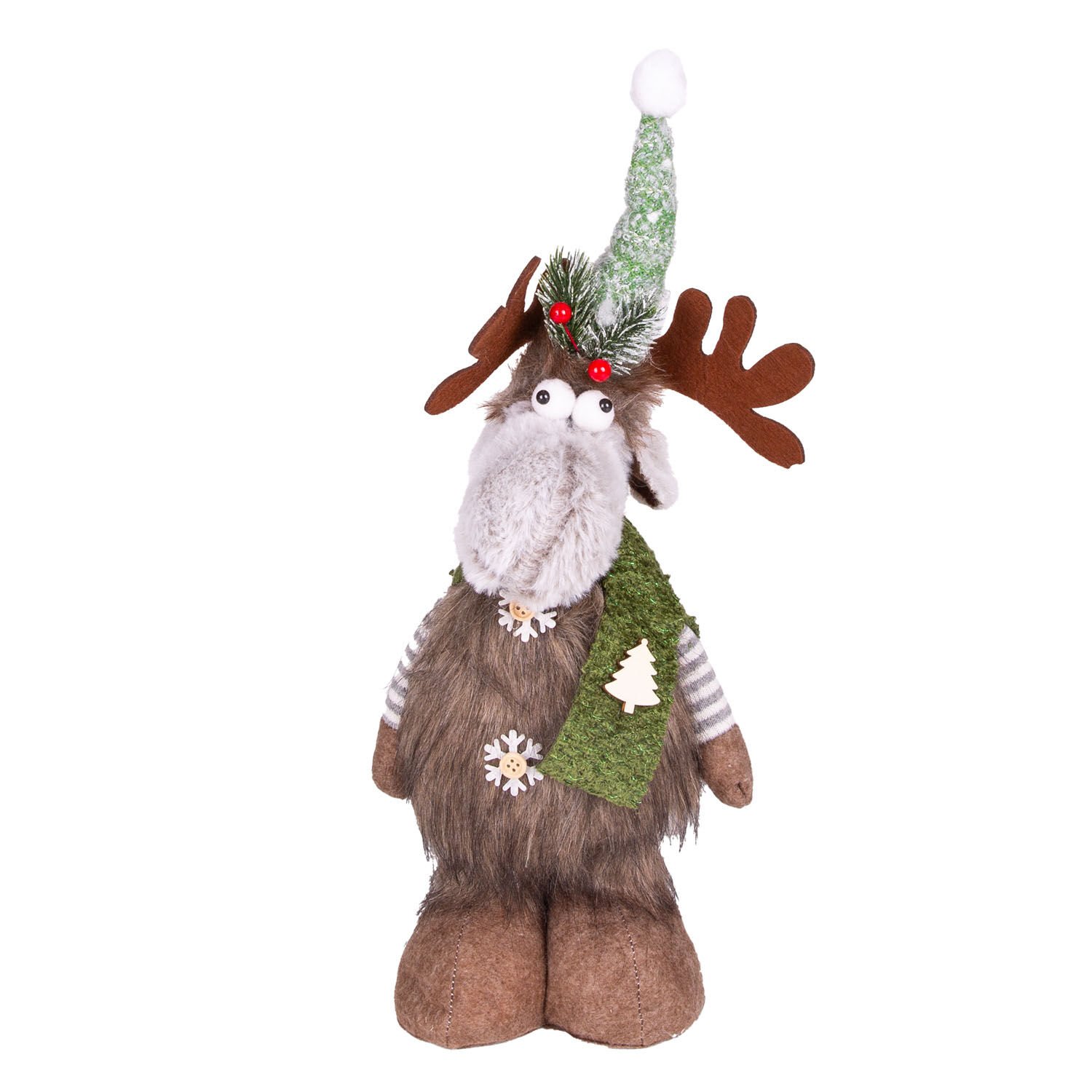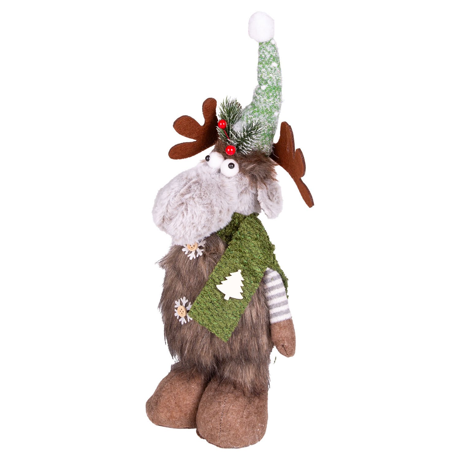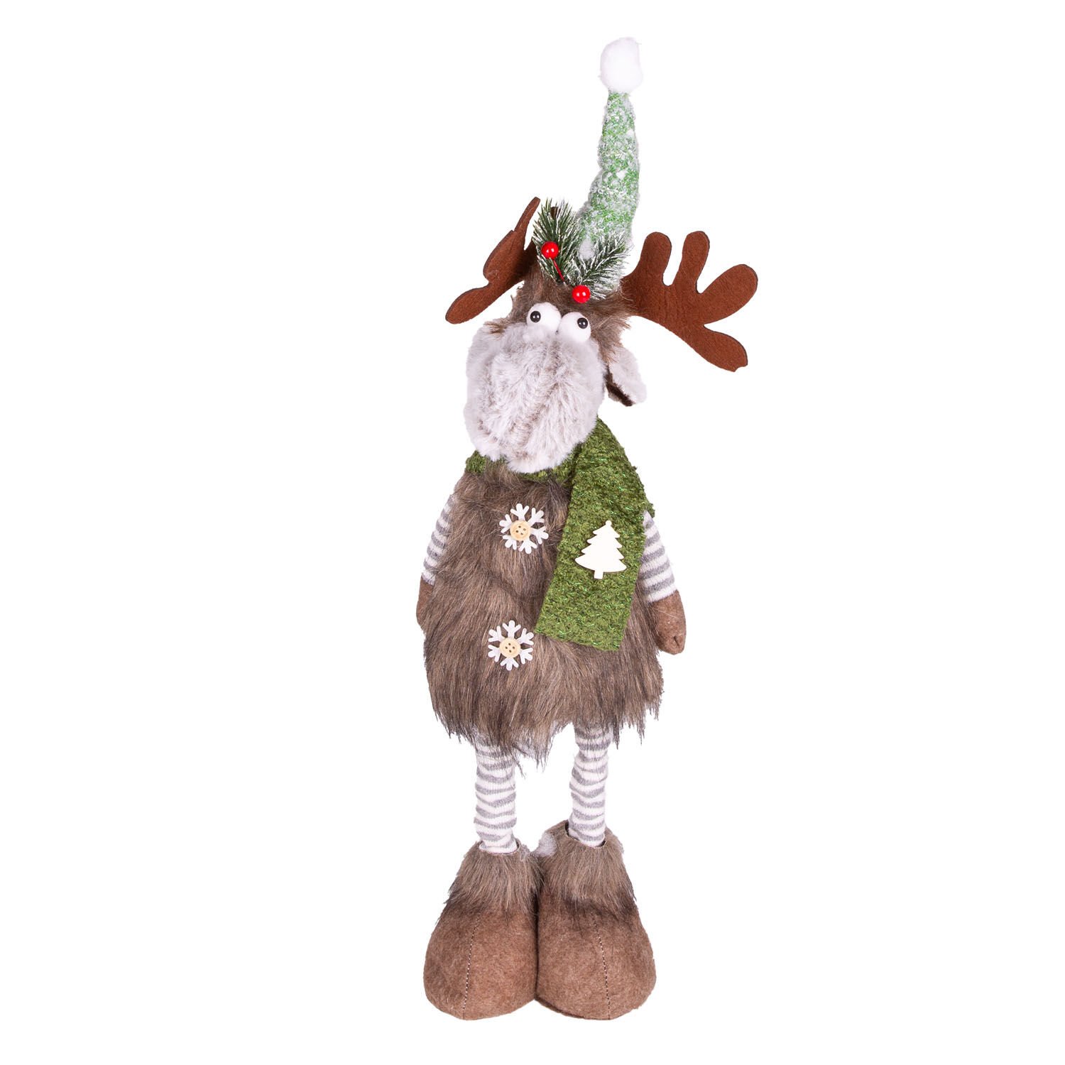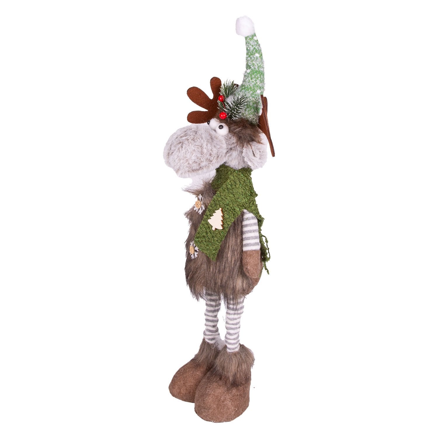 Yılbaşı Süsü, Geyik Figürü, Teleskop Uzayan Bacaklı, Kahverengi-Yeşil - 20x11x64 cm