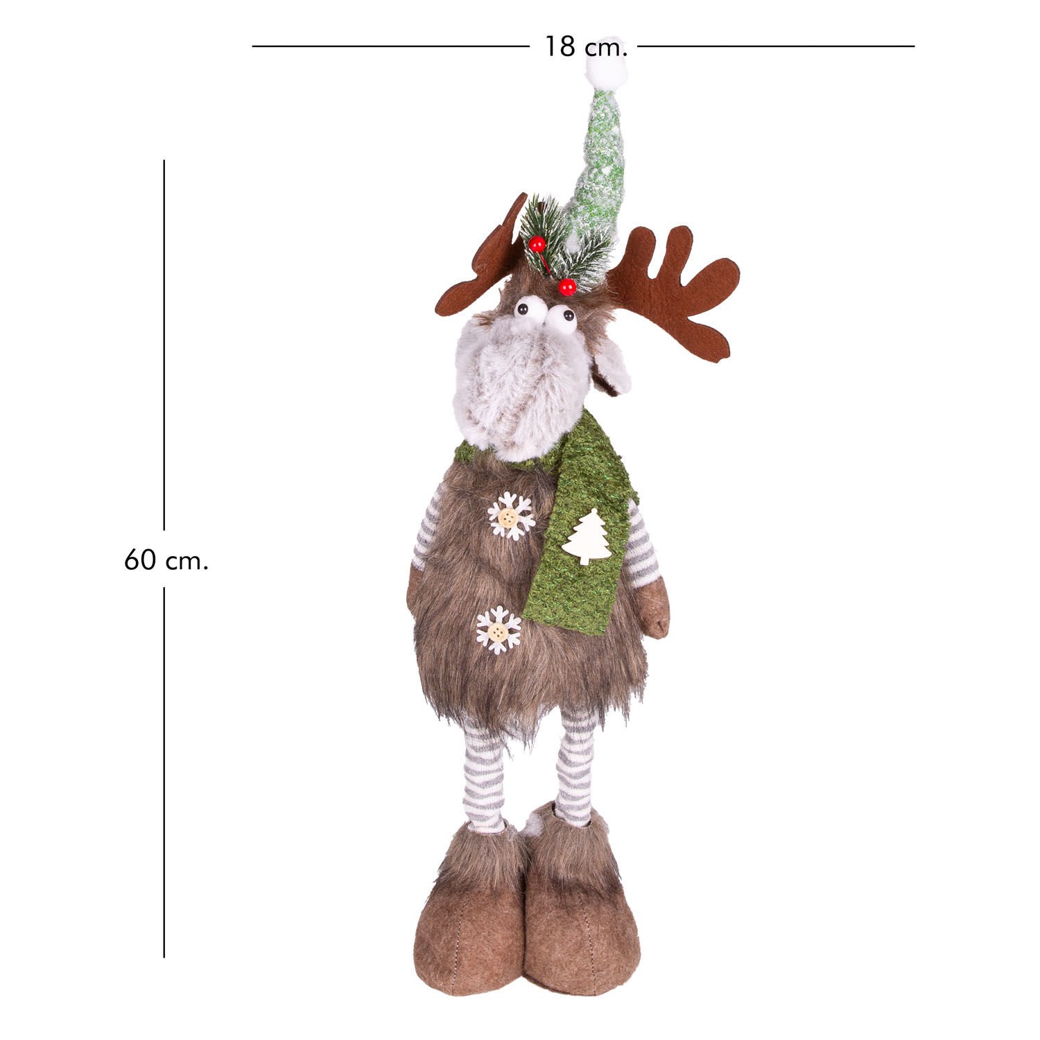Yılbaşı Süsü Geyik Figürü Teleskop Uzayan Bacaklı Kahverengi-Yeşil 20x11x64 Cm.