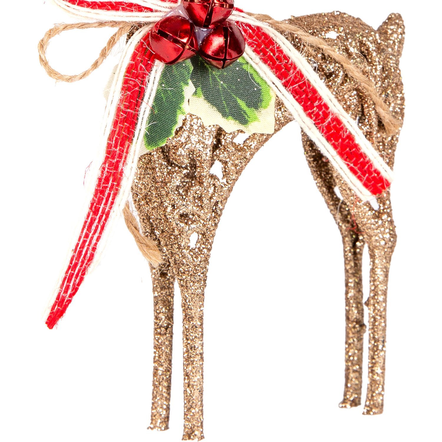 Yılbaşı Süsü, Geyik, Yılbaşı Dekorlu, Simli, Gold - 8x16 cm