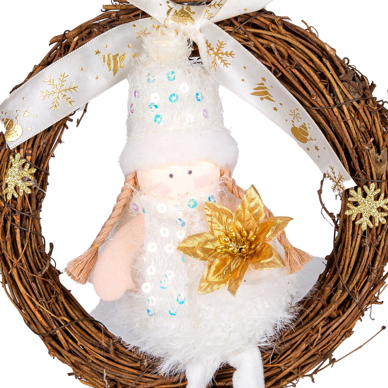 Yılbaşı Süsü, Kapı Çelengi, Gold-Beyaz - Peri Figürlü, 20x30 cm
