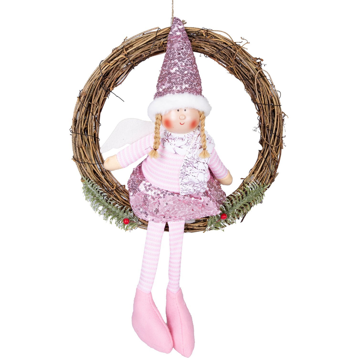 Yılbaşı Süsü, Kapı Çelengi, Pembe - Peri Figürü, 30x52 cm